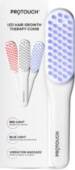 PROTOUCH LED Hair Therapy Comb with Red & Blue LED light scalp treatment & vibration massage | Hair Fall control | Scalp Massage | Portable & Detangling | For Men & Women (unisex) | For All Hair Type