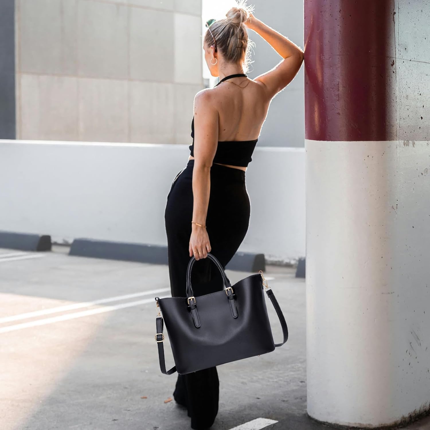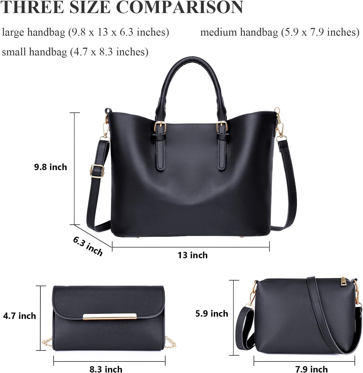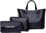 QCQ 3-Pack Fashion Handbags and Purses for Women – Tote Bag, Top Handle Satchel, and Shoulder Bag Set(Black)