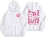 Qgaomye Amazon Deals Flower Print Pink Graphic Hoodie For Women 2024 Trendy Cute Preppy Sweatshirt Long Sleeve Drawstring Pullover Tops With Pockets, 30 White, XL