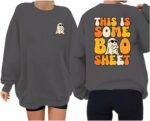 Qgaomye This Is Some Boo Sheet Sweatshirt for Women 2024 Trendy Halloween Oversized Pullover Cool Ghost Graphic Sweatshirt