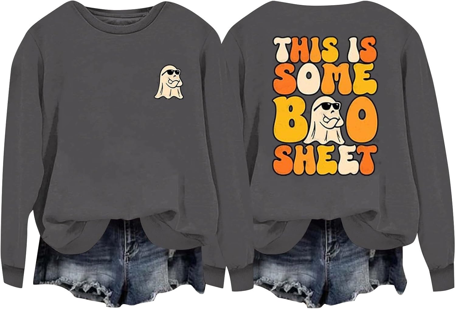 Qgaomye This Is Some Boo Sheet Sweatshirt for Women 2024 Trendy Halloween Oversized Pullover Cool Ghost Graphic Sweatshirt