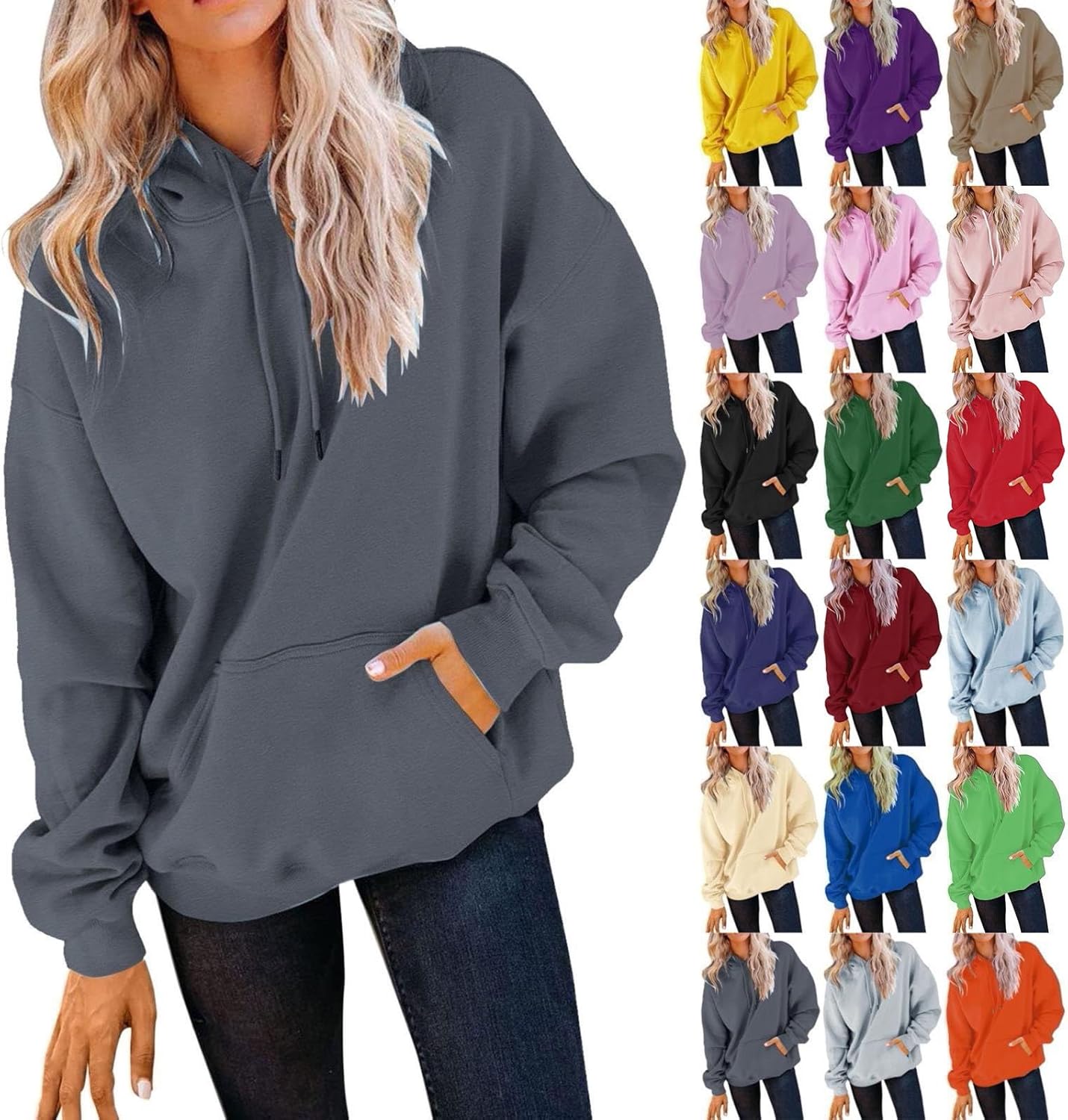 Qgaomye Women’s Fashion Hoodies & Sweatshirts Long Sleeve Drawstring Hoodies Western Solid Print Oversized Fall Tops Clothes