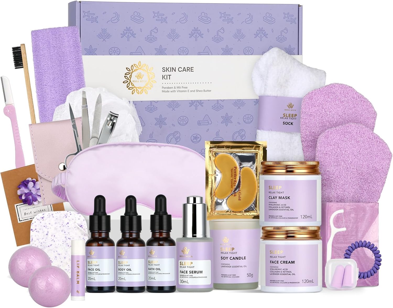 RA ROSA ACCA Facial Skin Care Set & Spa Kit – Mothers Day Gift Ideas, Self-care Relaxation Gifts, Skin Care Collection with Essential Oils, Hyaluronic Acid, Vitamin E. (Lavender)