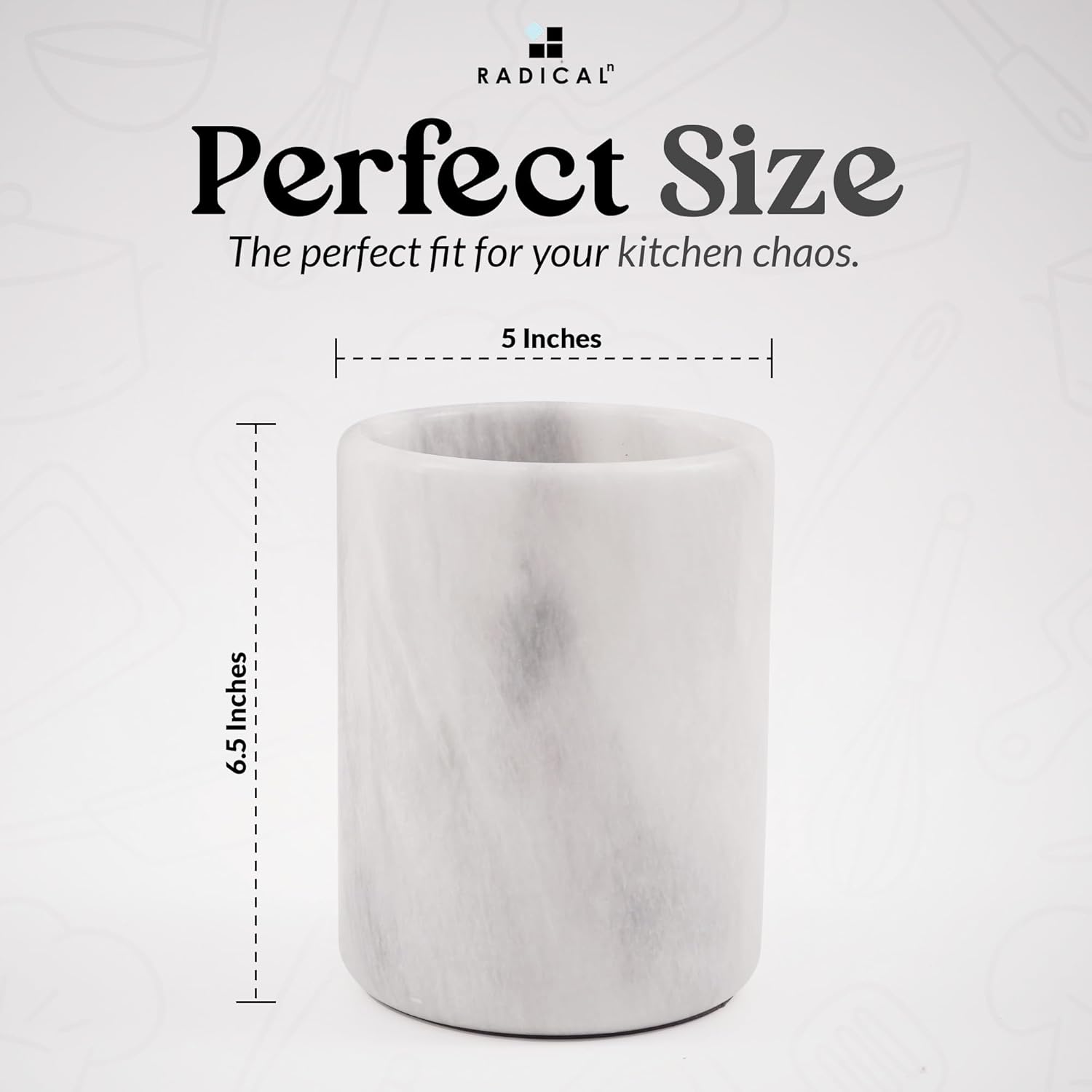 Radicaln Marble Utensil Holder 6.5 Inches White Handmade | Kitchen Utensil Holder for Cooking Spoons, Cutlery and Countertop Organization