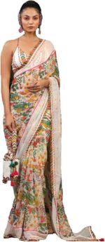 RAJESHWAR FASHION WITH RF Printed Georgette Fancy Sarees For Women With Unstitched Blouse Piece