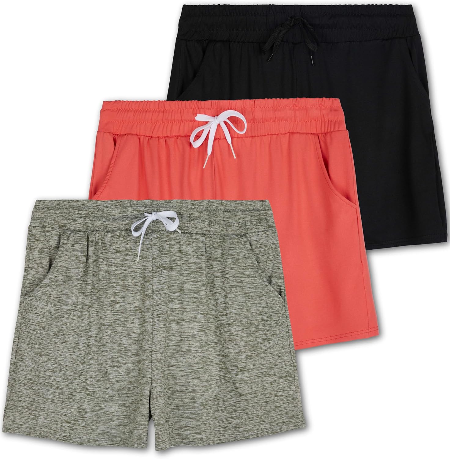 Real Essentials 3 Pack: Athletic Lounge Shorts for Women – Casual Sweat Shorts with Pockets (Available in Plus Size)