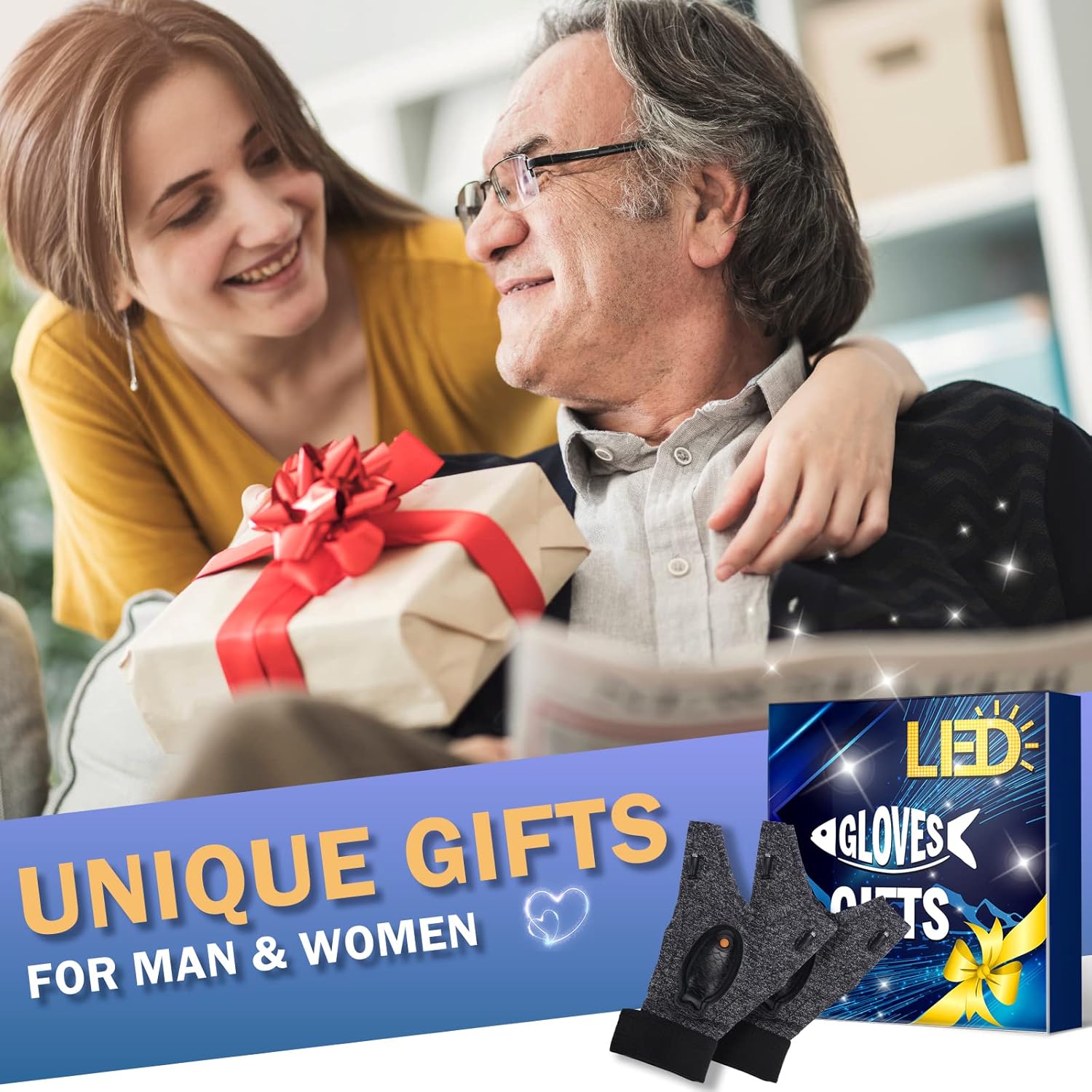 Unique and Useful Gifts for Men/Women: If you are looking for unusual cool dad gifts on fathers day and this is the right present for you! The lightweight gloves are good gifts idea for men, women, dad, father, husband, boyfriend, grandpa. The led flashlight gloves can be a wonderful gift on Christmas, stocking stuffers, anniversary, Valentine’s, or birthdays for fishermen, handymen, plumbers, car lovers, electricians, engineers, night running and hiking lover, maintenance workers.