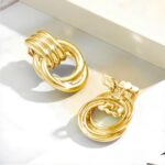 Chunky geometric clip earrings, the size as shown in the picture, Lightweight is 6g/piece; Color: Silver / Gold.