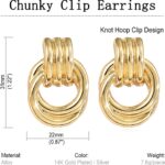 REELMAR Chunky Gold Geometric Clip On Earrings for Women Trendy Thick Hammered Rectangle Dupes Earrings Minimalist Statement Earrings No Piercing Clips