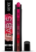 RENEE FAB 5 Glossy 5 in 1 Lipstick 7.5 Gm – Five Shades in One – Moisturizing & Nourishing, Long Lasting, Glossy Finish – Intense Color Payoff – Compact, Glides Smoothly with One-Stroke Application