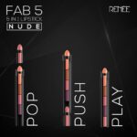 FABULOUS EVERYDAY Wondering how to add some fun to your monotonous routines? Don t worry, we ve got you! RENEE is all about providing trouble-free solutions and with our 5-in-1 FAB 5 Nude lipstick, you can go from the focused boss lady in the day to the sexy enchantress by night, effortlessly. It uses the buttery soft, easy-glide formula which allows you to smoothly take up different roles, whenever you have to. From mystical mauve to pretty peach, it brings together five everyday essential shades. It makes sure you don t have to make difficult choices for everyday beauty. Whether it s a last-minute meeting, a romantic date night or a spontaneous road trip with your buddies, there s nothing our FAB 5 Nude cannot fix! Well, who d say no to this pack of convenience for beautifully nourished lips? WHAT GIVES FAB 5 NUDE A PERMANENT PLACE IN YOUR MAKEUP ARSENAL? Our FAB 5 Nude proves to be a promising addition to your makeup collection because it contains every shade that you might need throughout the day. It has got you covered for your morning work calls, evening tea-breaks and dreamy date nights. It is enriched with Jojoba Oil that gives your lips the freshness they need. It s not just your ordinary lipstick, it s lip-stick by you through thick and thin!.