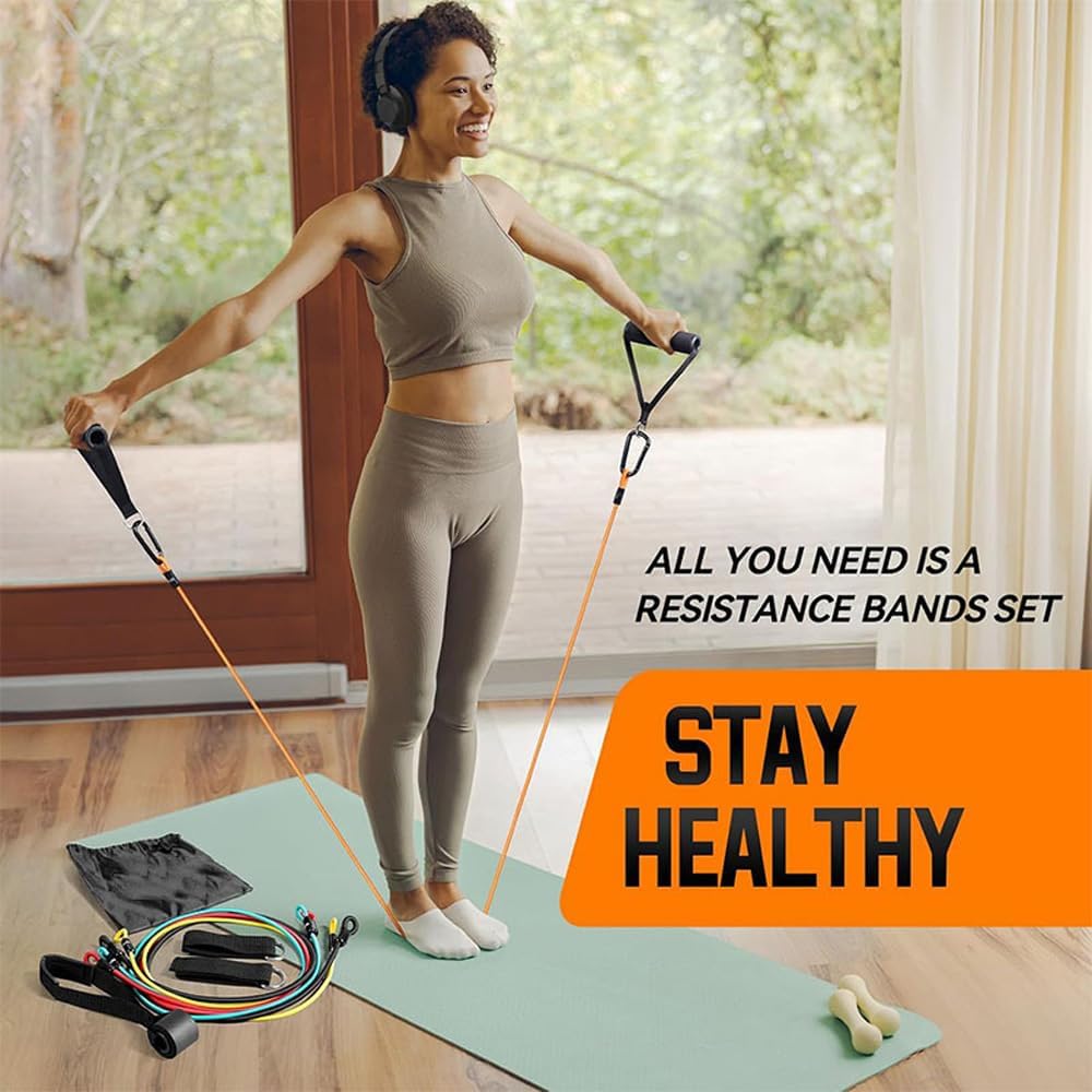 Complete Workout Solution: Get a full-body workout with our resistance band set, including 5 bands with varying resistance levels, 2 cushioned handles, a door anchor, a custom workout guide.