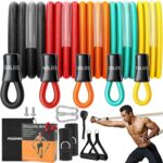 Resistance Bands Set 14-Piece Anti-break Plastic sleeve Athletic Stretch Bands (150 lbs.) FOONNUN for Strength Training and Body Sculpting with Handles, Door Anchors, Leg Straps and Carrying Case