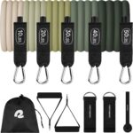 MULTIFUNCTIONAL: These stackable resistance bands with handles are versatile for resistance training, yoga, pilates and physical therapy. Workout your arms, legs, booty, and core with color-coded workout bands set of 5 resistance levels.