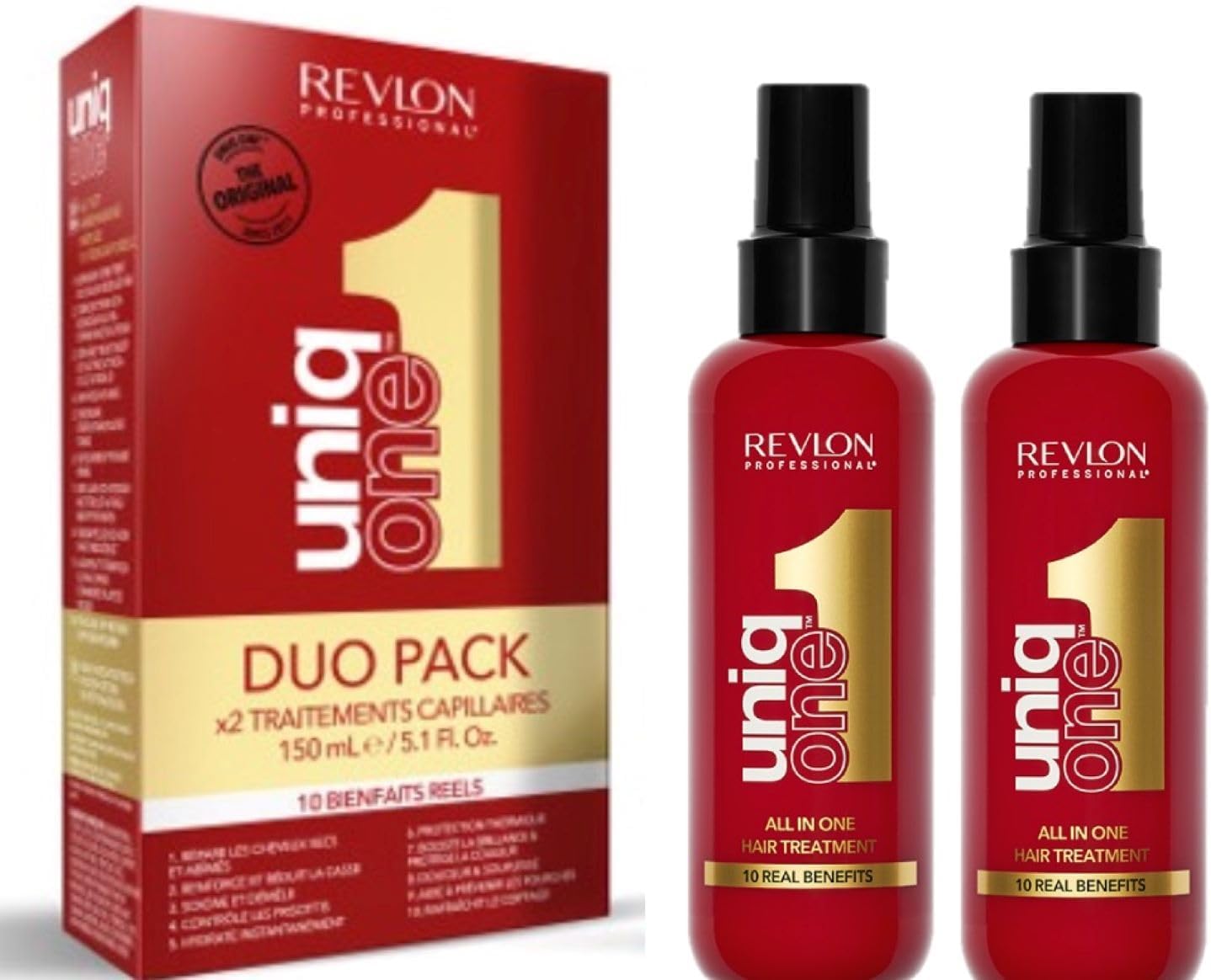 REVLON PROFESSIONAL UniqOne Hair Treatment Classic Duo Pack, Spray Treatment for More Volume, Smoothness & Better Combability, Hair Care without Rinsing, Helps Prevent Split Ends, 2 x 150 ml