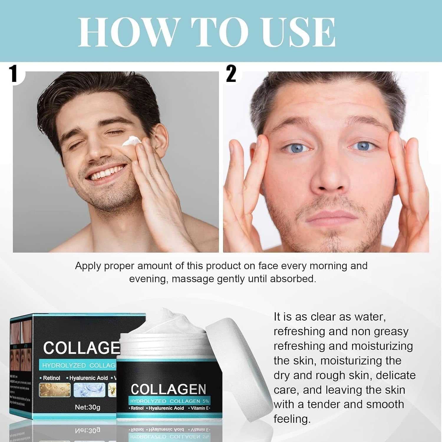 【Men’s Collagen Anti-Wrinkle Cream】 – Designed specifically for men, this anti-wrinkle cream soothes rough skin, reduces wrinkles and fine lines, and provides deep hydration. Achieve an eye-catching, youthful appearance with this powerful face lotion.