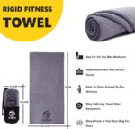 RIGID FITNESS Microfiber Gym Towel – Sweat and Soft Feeling Towels, Yoga Microfiber Cloth – Quick Dry & High Absorbent Sweat Towel For Gym, Exercises and Outdoor – Thick 400Gsm – 75x35cm (Grey)
