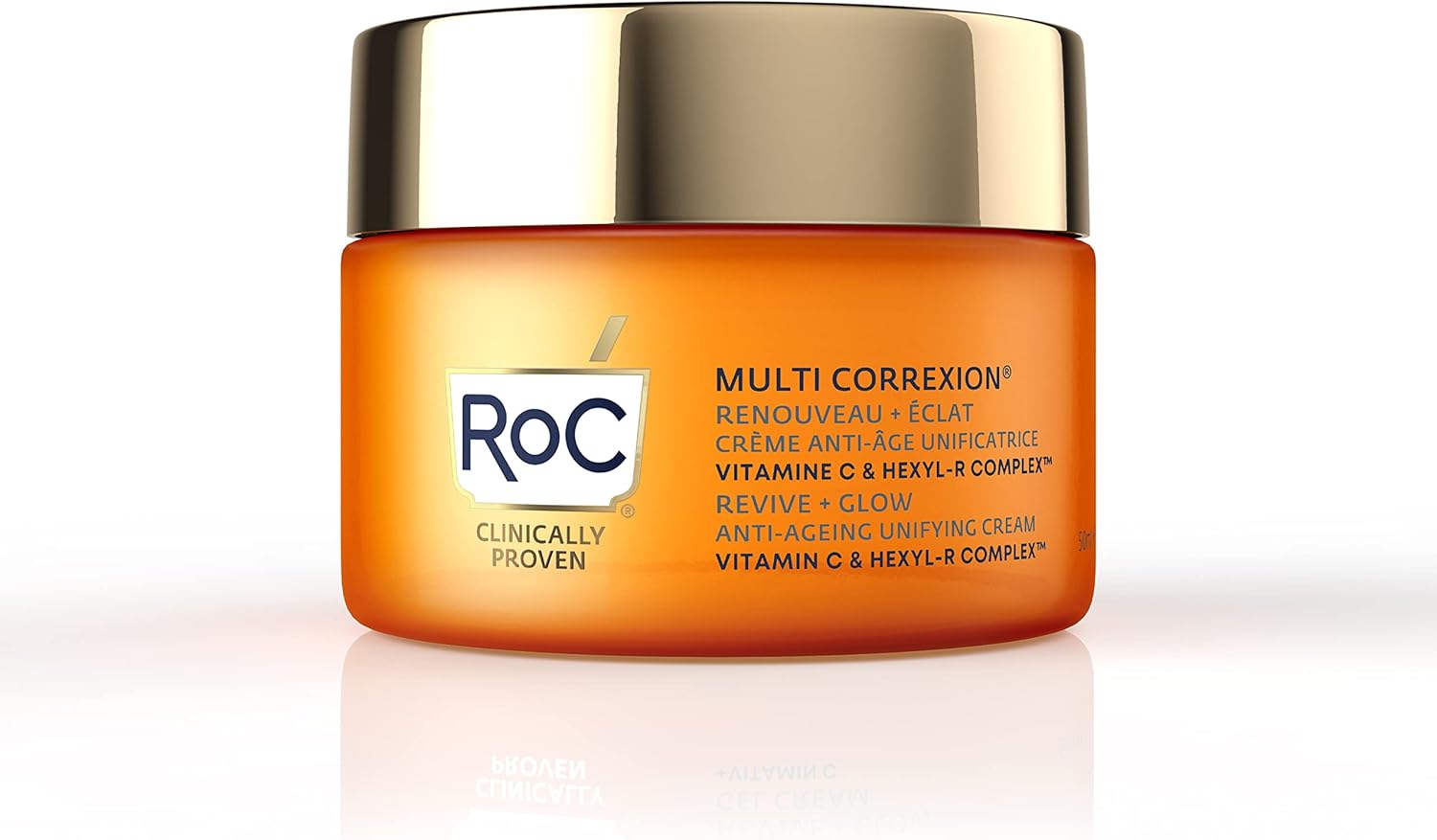 RoC Multi Correxion Revive + Glow Unifying Cream Rich smoothes wrinkles and improves skin tone and texture