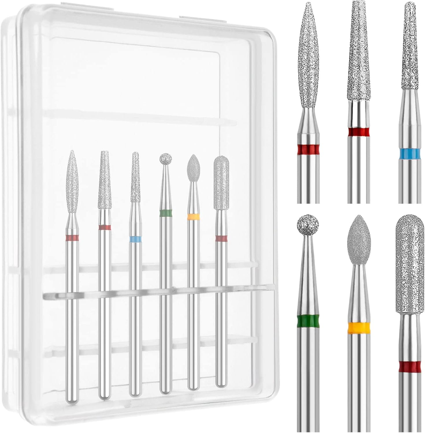 6Pcs Nail Drill Bits: Each nail drill is made of quality carbide diamond materials, which is sturdy enough and little friction and heat, remove dead skin and cuticles without pain or irritation, whether you are a nail technician or prefer to do your nails at home, this set of nail art drill bits will be ideal for your nail art supplies