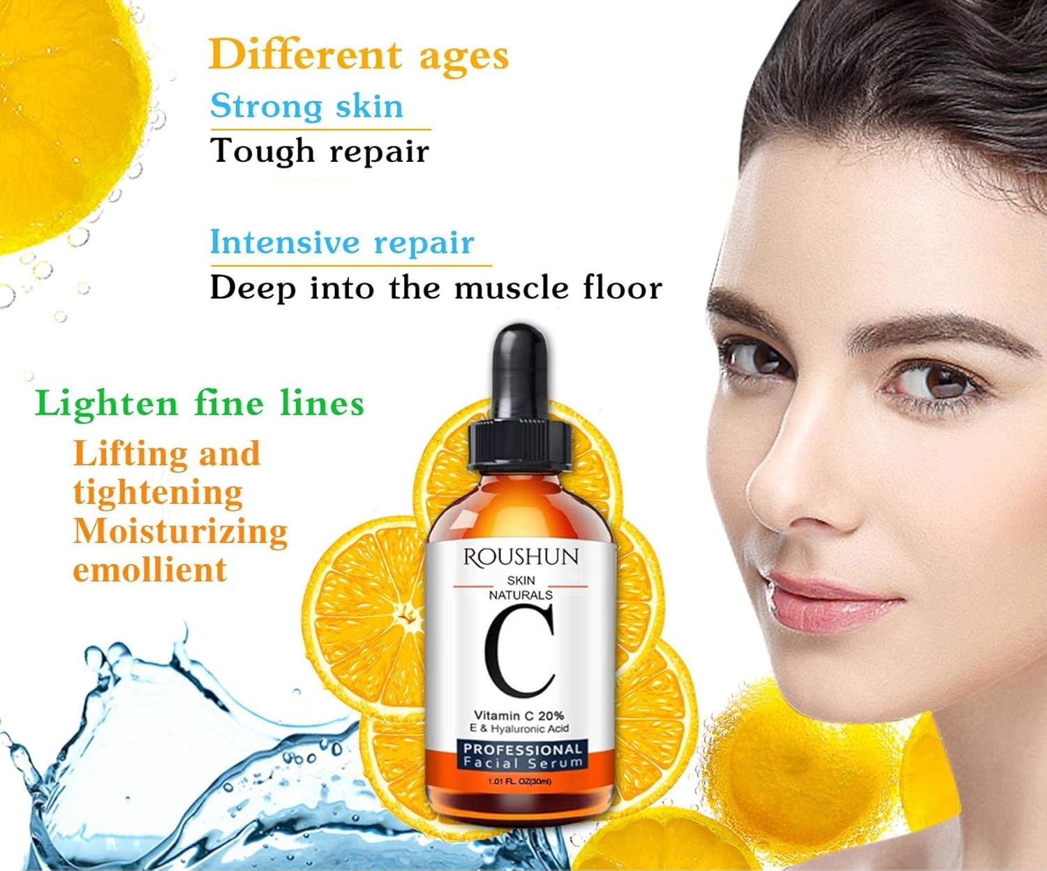 ROUSHUN Skin Naturals Vitamin C 20 Percent E& Hyaluronic Acid