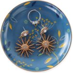 RUIMIC Ceramic Ring Dish Jewelry Tray,Bohemian/Boho Dandelion Decorative Organizer Trinket Dish with Golden,Home Decor Wedding Birthday Housewarming Gift for Her(Blue)