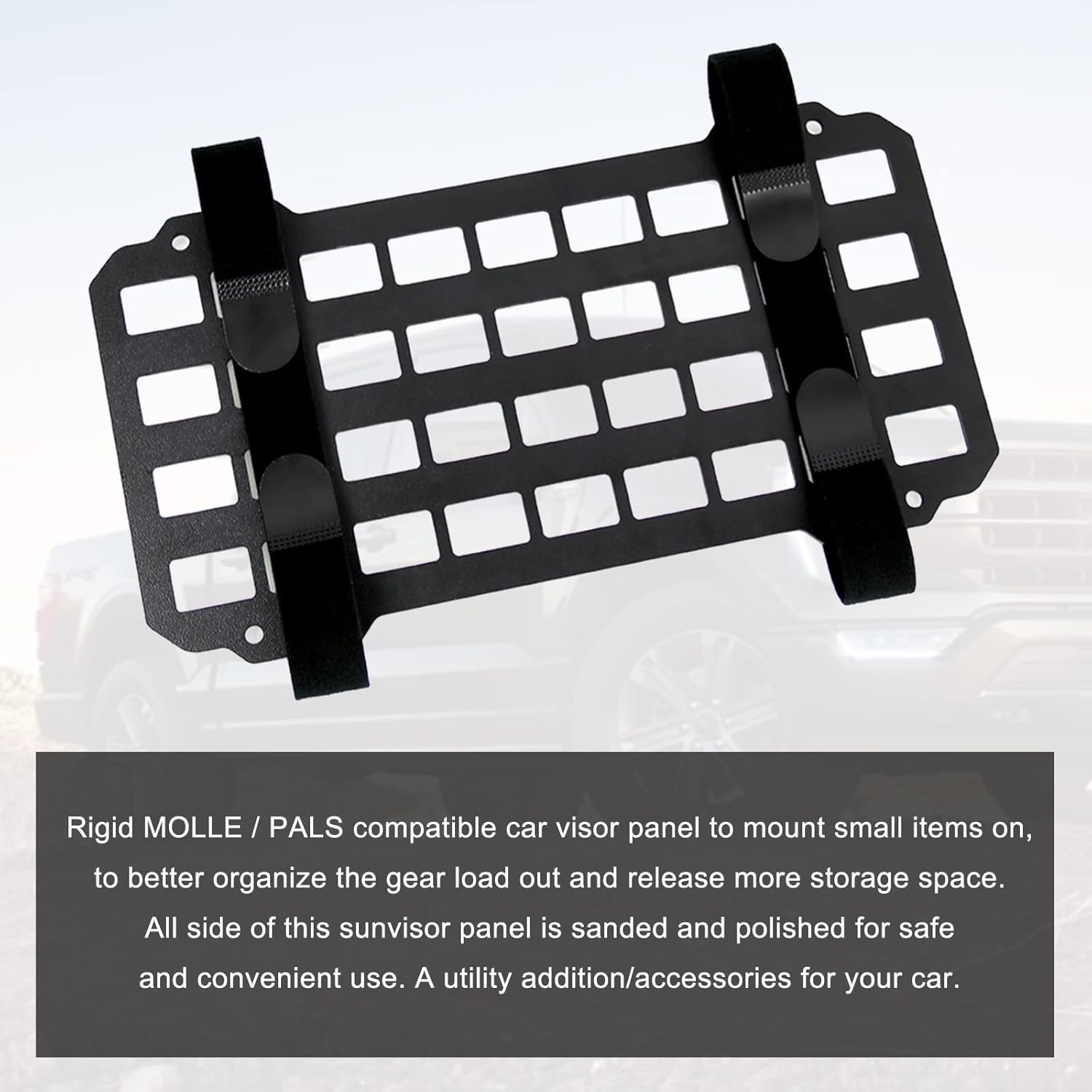 【Premium Material】: Constructed with high-quality, rigid ABS Molle/Pals compatible panels featuring a matte finish. Measuring 5.8 inches in width, 12 inches in height, and 0.12 inches in thickness. The package includes one Molle visor organizer (including mounting straps).