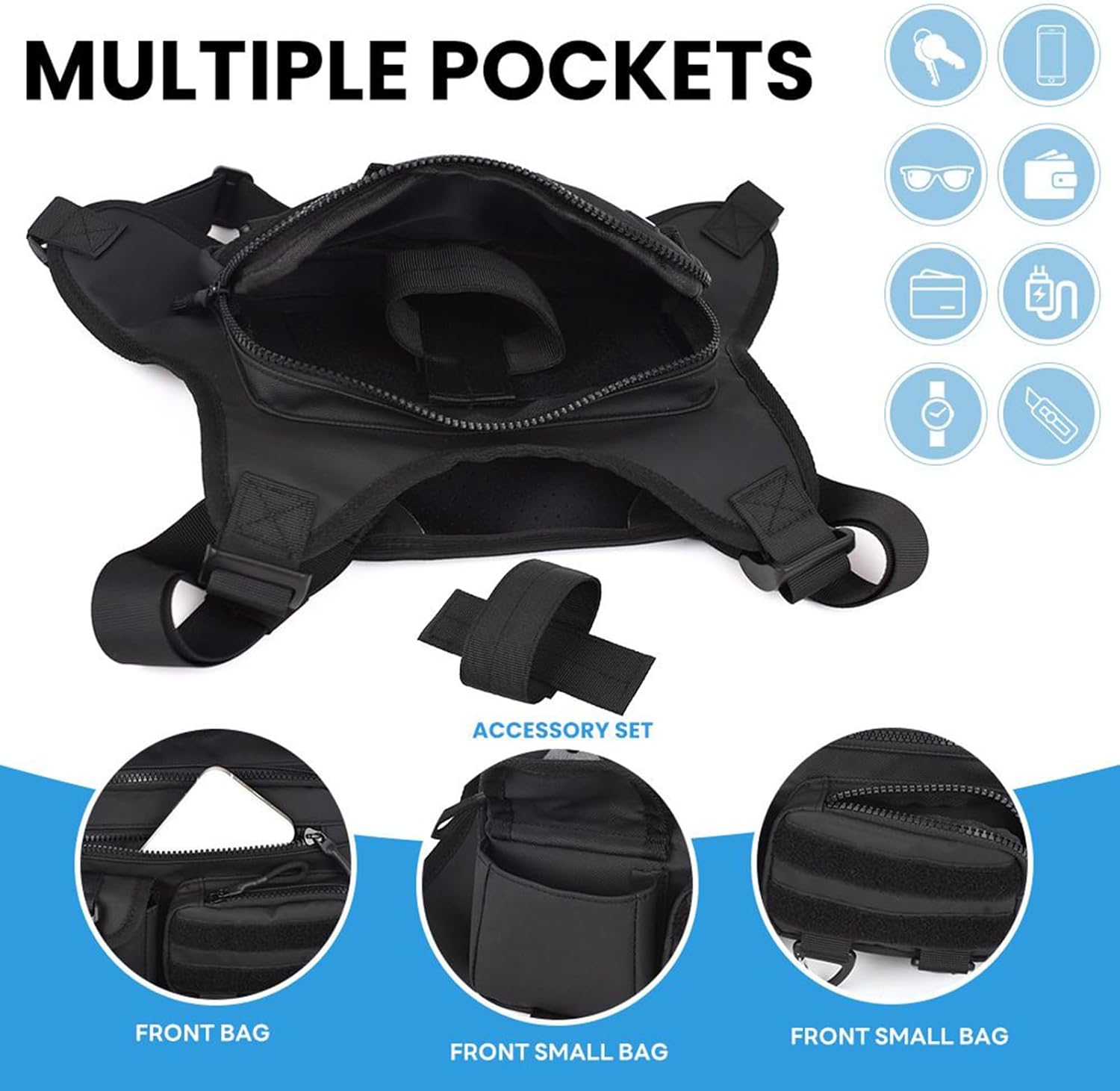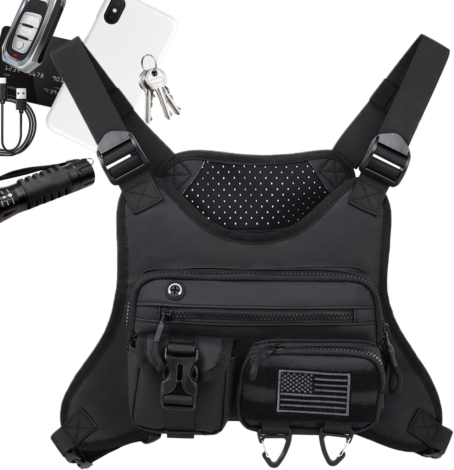 Designed to meet the needs of active lifestyles, this chest bag functions as a pouch, vest, or compact backpack. Suitable for men and women, it is a must-have piece of outdoor gear, featuring a phone holder for secure storage. Lightweight and lasting, it is perfect for camping, hiking, cycling, jogging, hunting, workouts, or traveling. A must-have for runners and bikers.