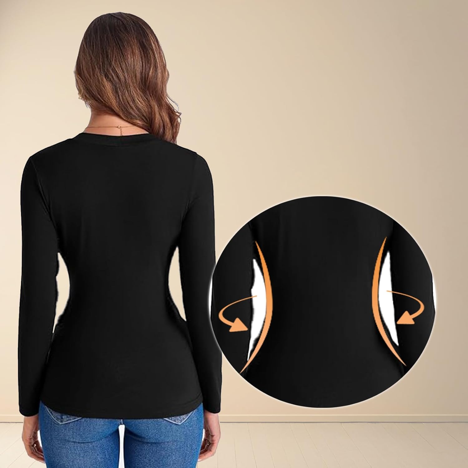 Sahunfri V-Neck Long Sleeve T-Shirt Women,Basic Tops Women V-Neck,Ladies Long Sleeve T-Shirt,V-Neck Tops for Women,Slim Fit Casual Wear Women