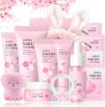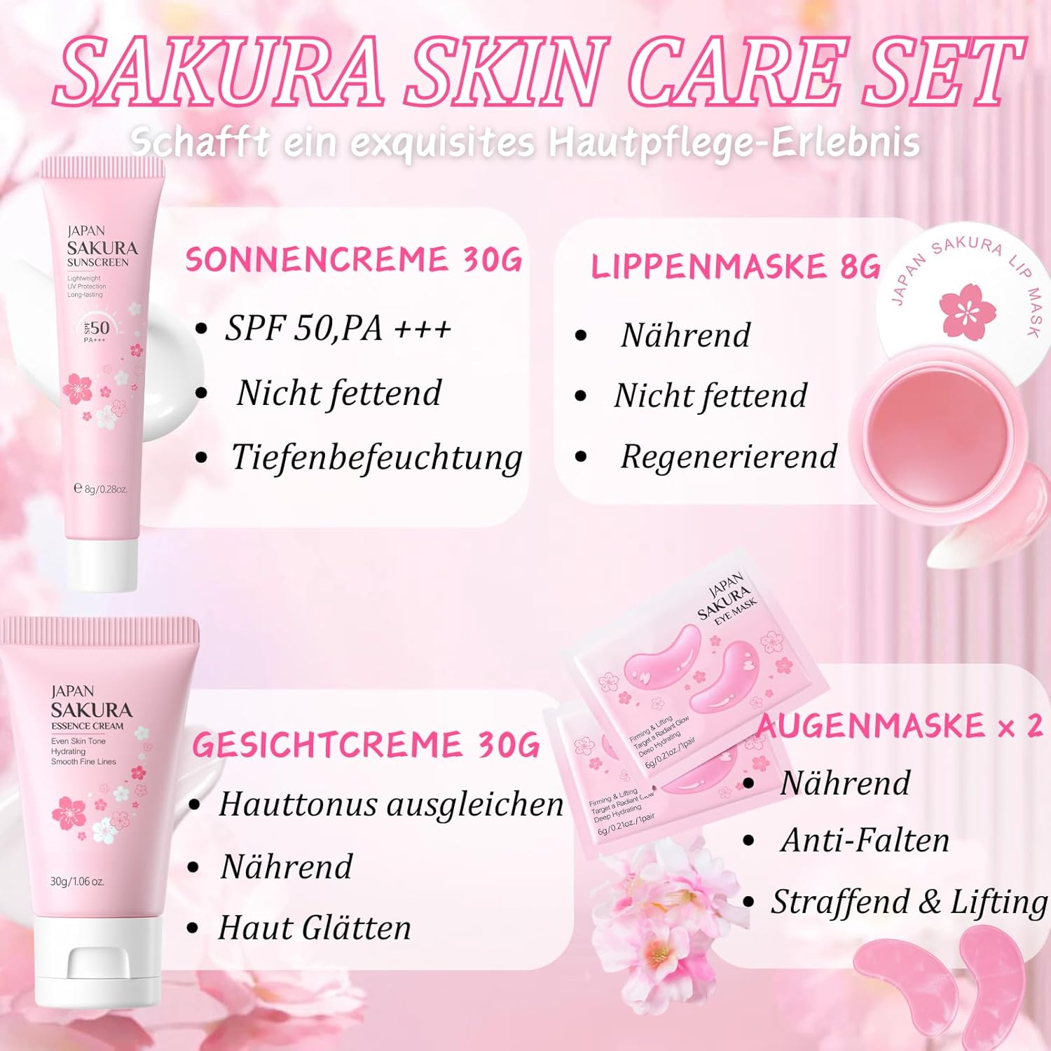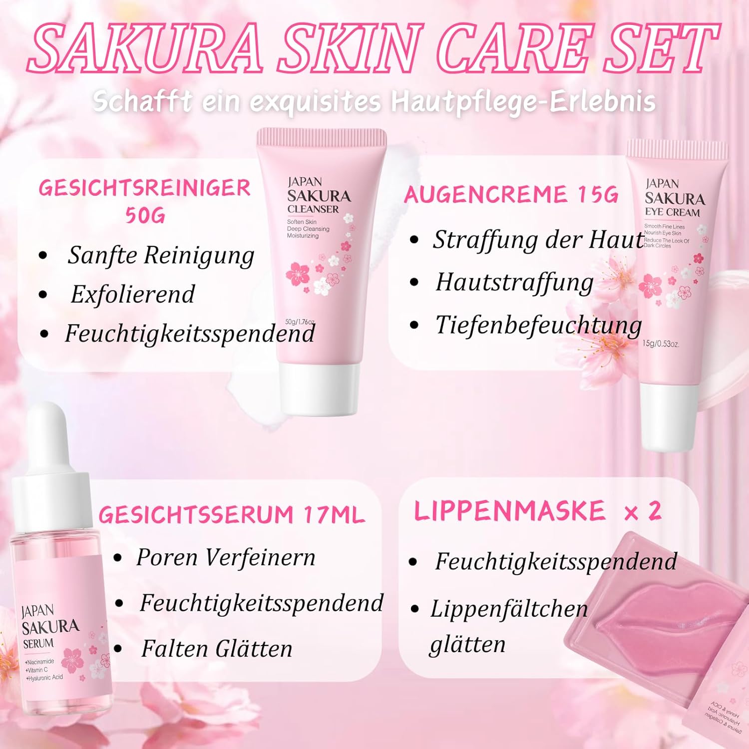 Sakura Skin Care Set Teenager Girls Gifts – Skincare Set Moisturising – Gift Set Women – Cherry Blossom Face Care Set – Firming Beauty Set – With Serum, Cream Lips & Eye Mask