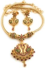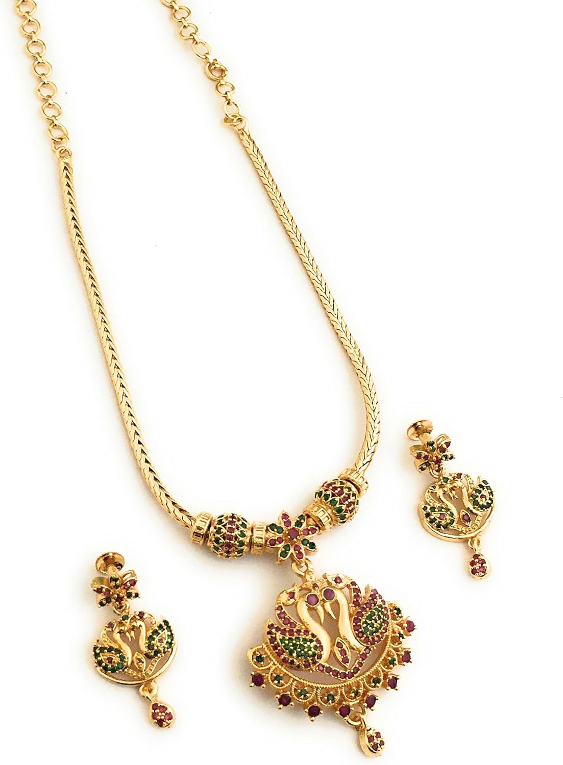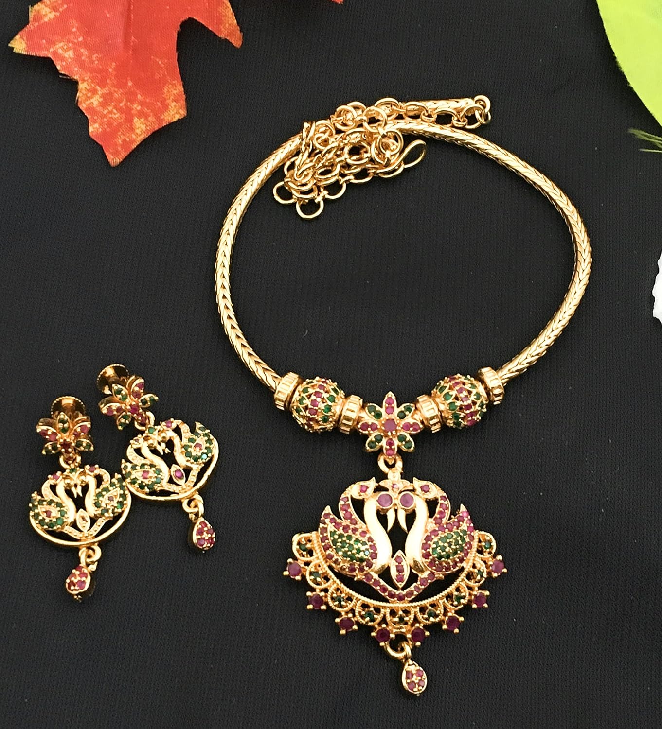Sasitrends One Gram Gold Plated Traditional Peacock Designer Short Jewellery Set with Earrings for Women and Girls