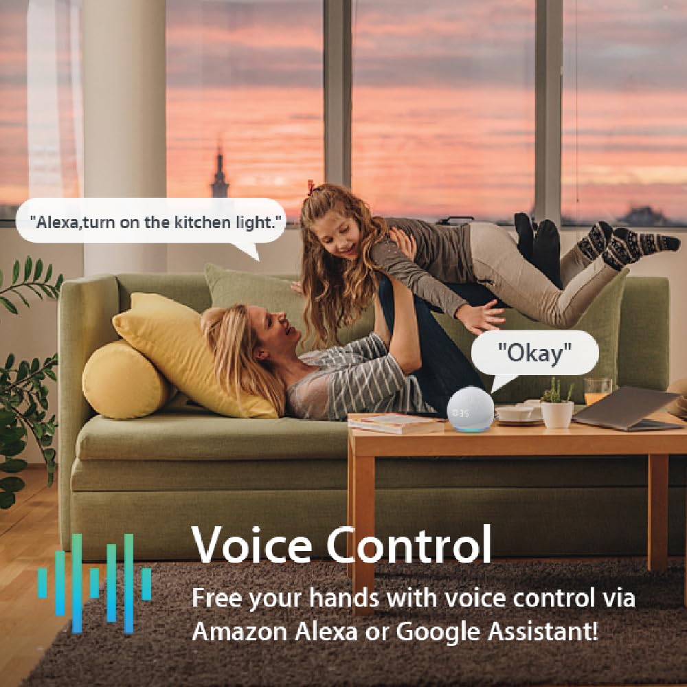 Works with Alexa and Google home to conveniently control the light with the simple voice command while your hands are full, “Alexa/Google, turn on/off the light”. No Hub, no neutral or subscription required.