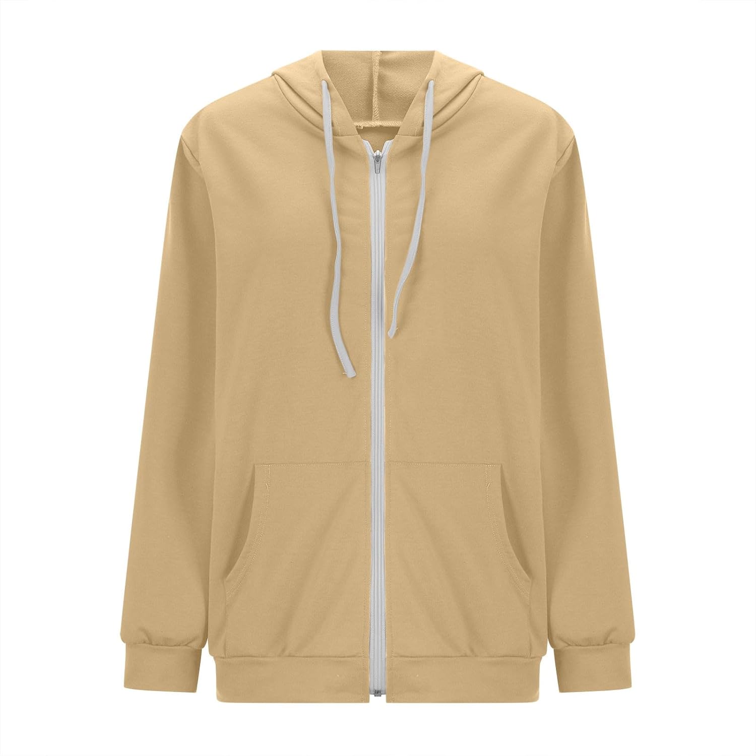 Sczwkhg Women’s Full Zip Up Hoodie 2024 Lightweight Loose Long Sleeve Hooded Sweatshirts Drawstring Jacket Coat with Pockets