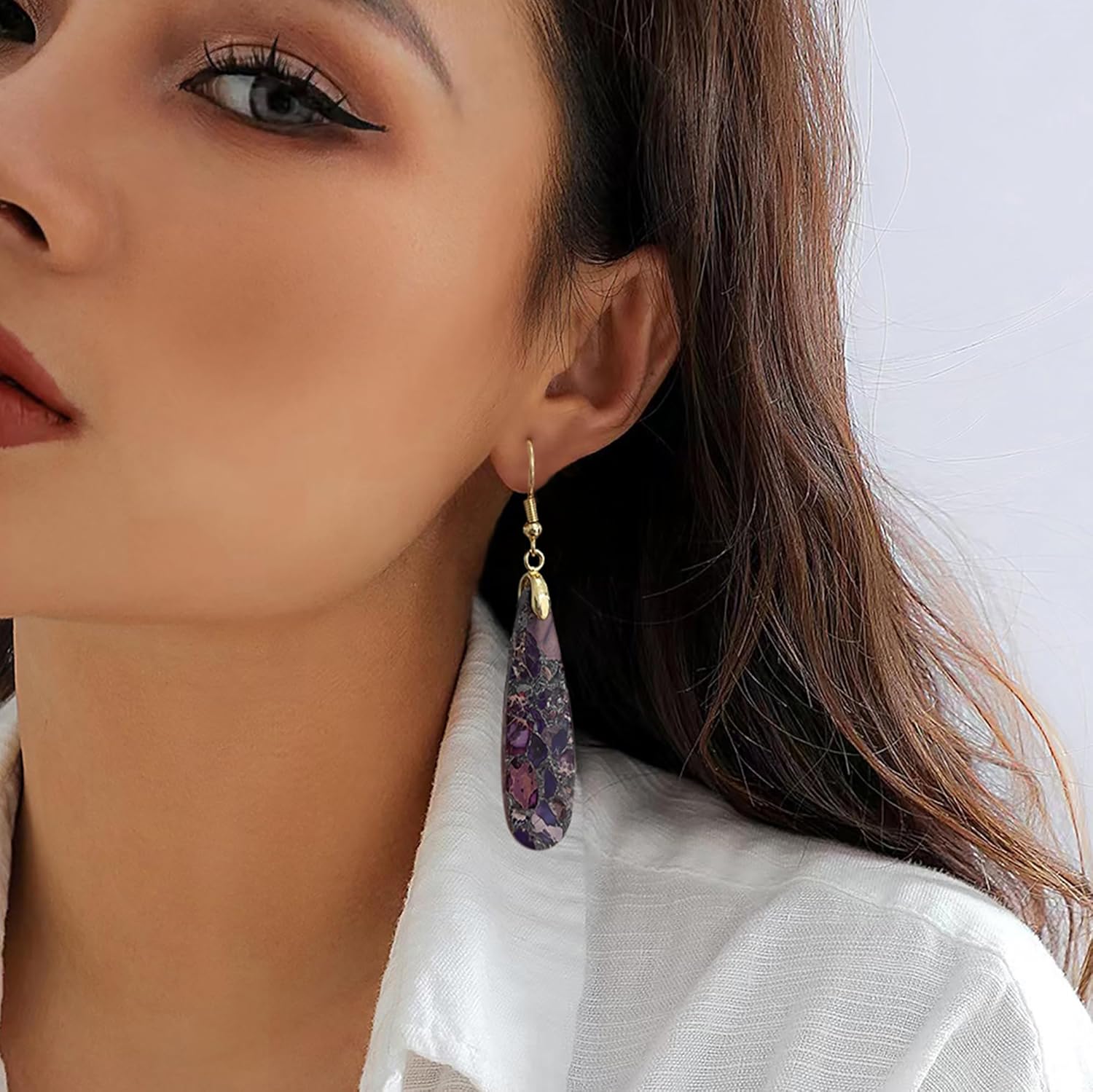 SELOVO Boho Stone Earrings for Women Trendy Teardrop Dangle Earrings Fishhook Drop Earrings