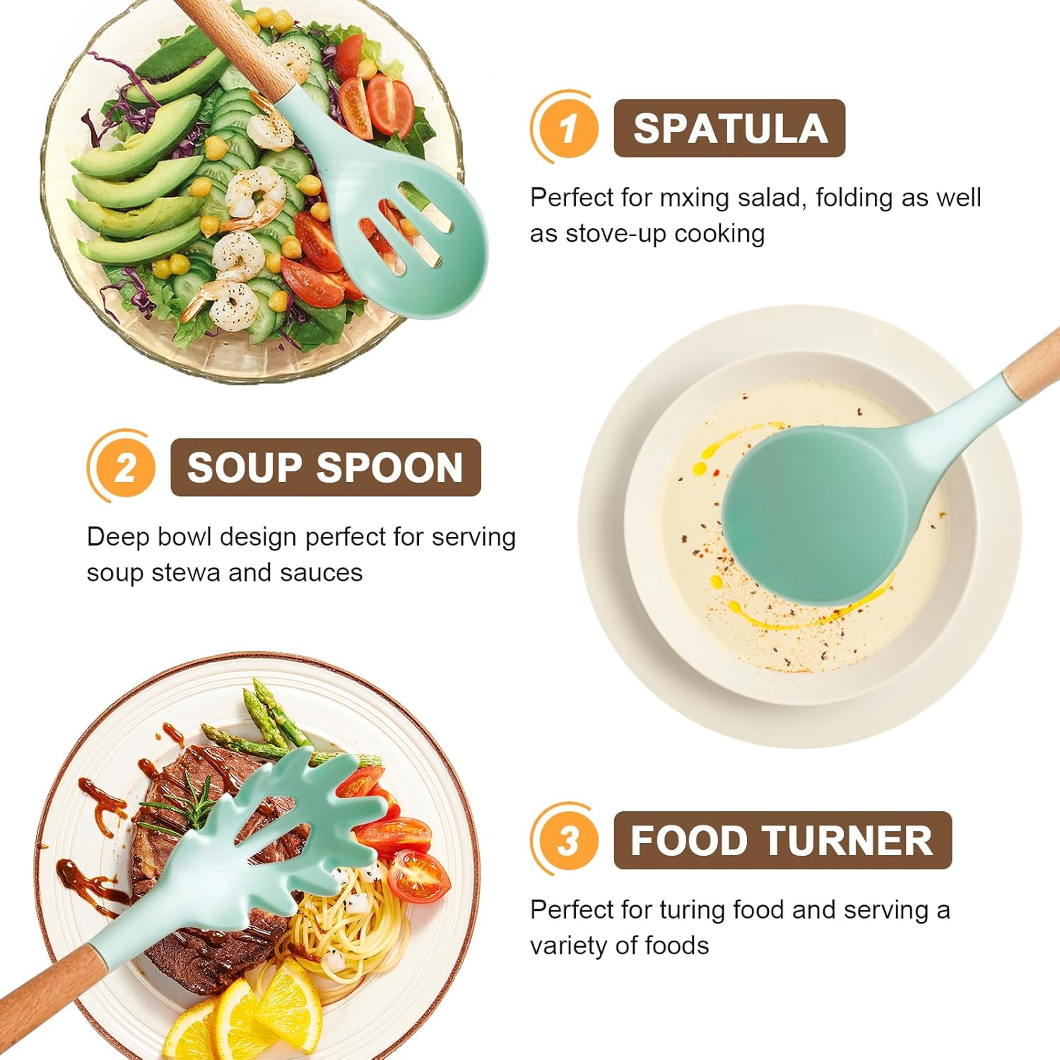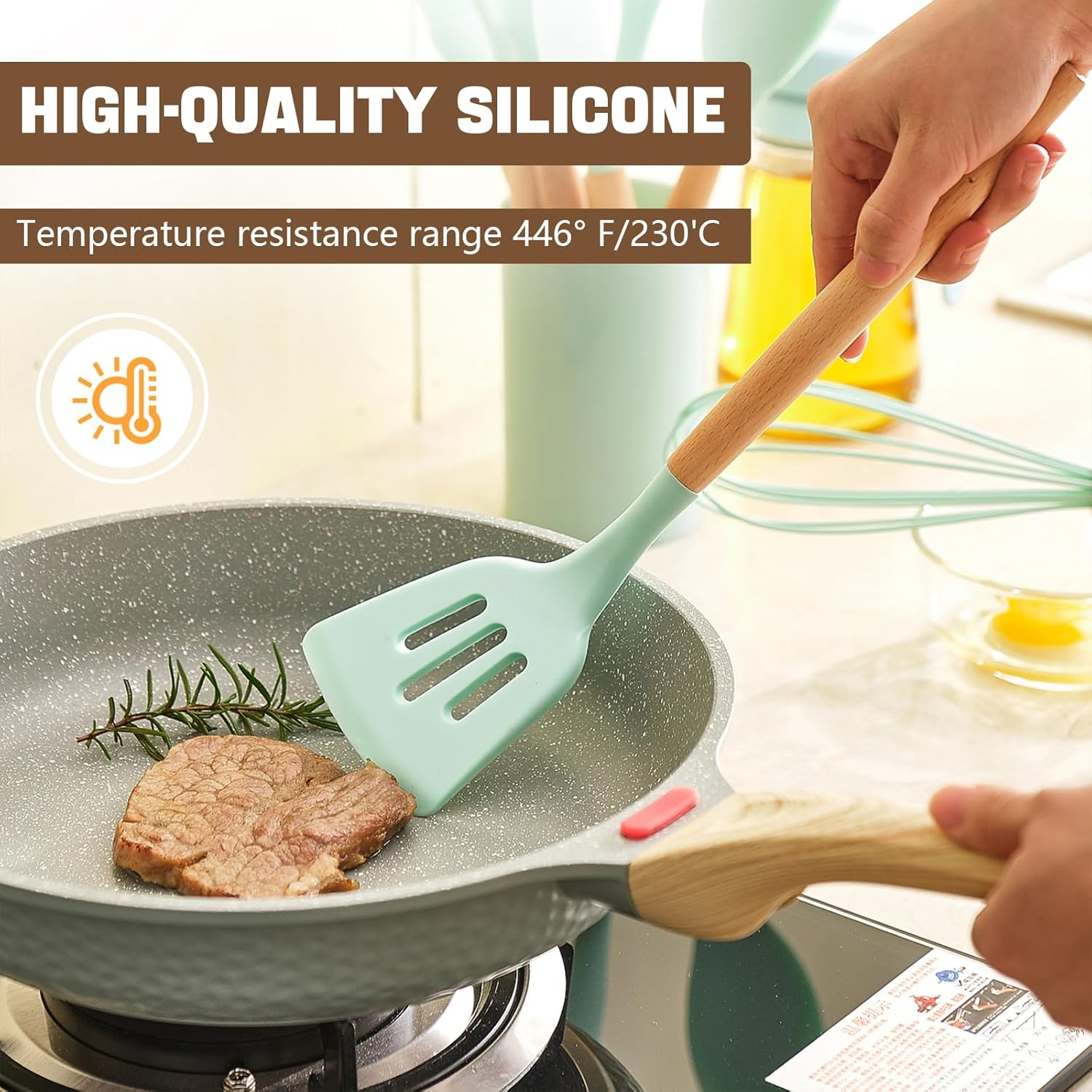【Best Gift Ideal】: Order the non-stick silicone cutlery cooking set as the best gift for women, moms, dads and friends. Any occasion, such as birthdays, Mother’s Day and wedding parties, housewarming, Christmas or Thanksgiving – it will be the most useful gift!