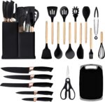 seness 19 Pieces Kitchen Utensils Set Silicone Cooking Utensils Kit Spatula Heat Resistant Wooden Spoon Gadgets for Non-stick Pans Most Intimate Kitchen Companion Best Gift (Black)