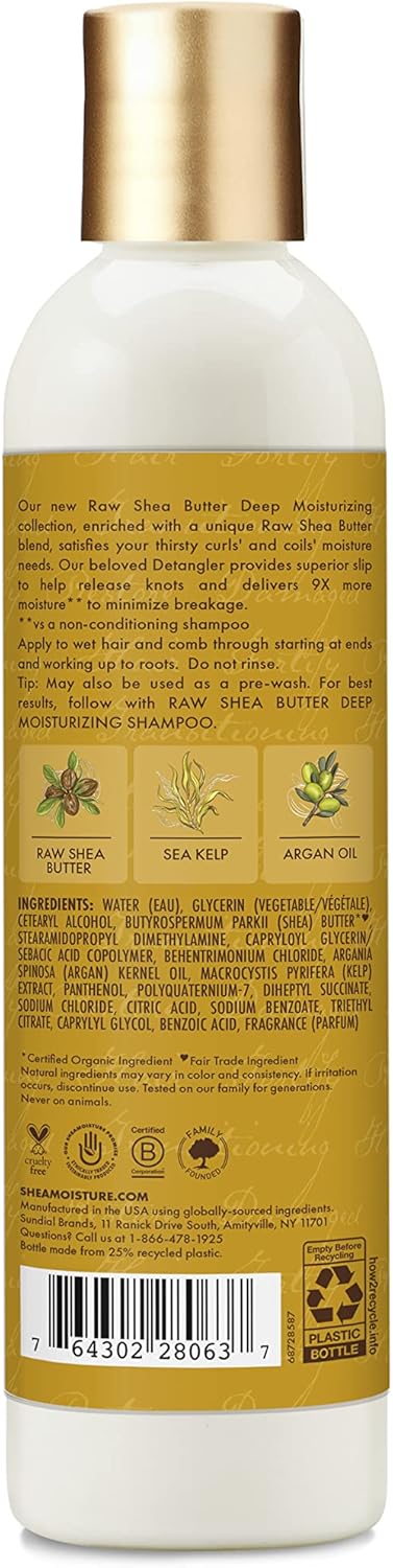 SheaMoisture Raw Shea Butter Deep Moisturizing Detangler is a hair styling moisturizer blended with Fair Trade Shea Butter to soften, condition and renew damaged transitioning hair or frizzy hair.