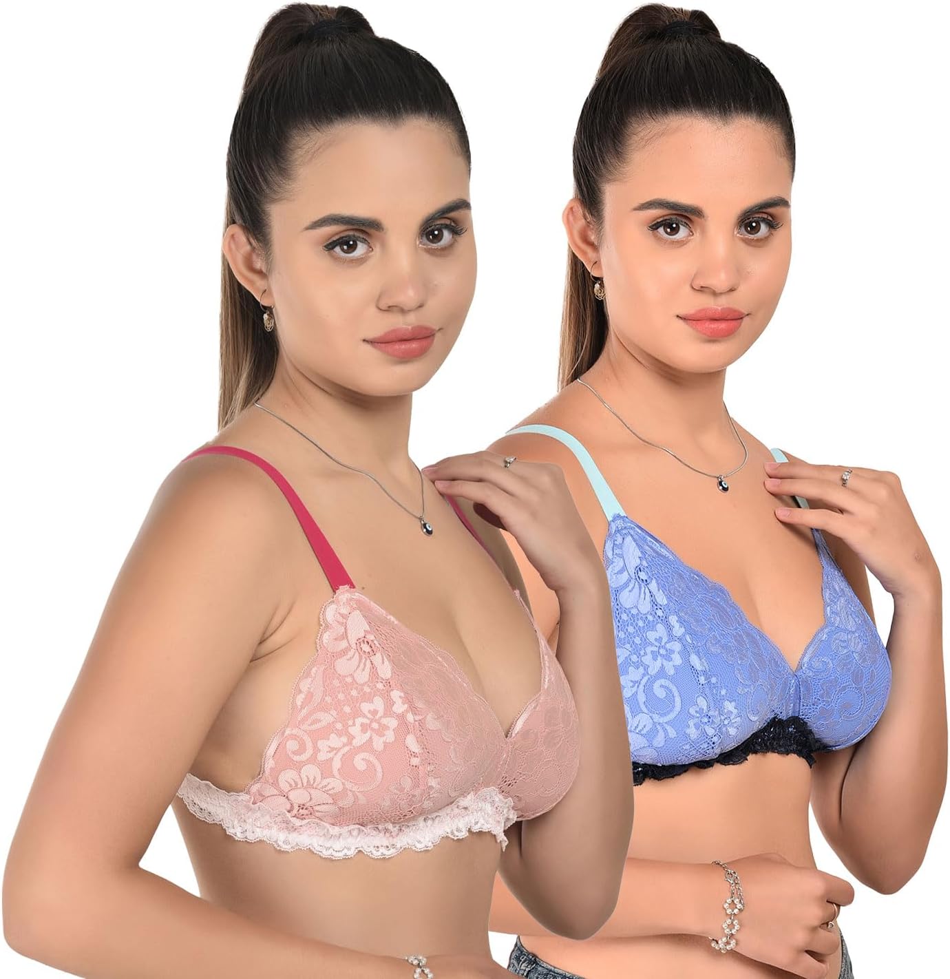 Sheluxe Women’s No-Padded V-Neck Seamless Bralette, Polyester Everyday Basic Bra with Comfortable Straps for Girls (pack of 2) (UAE/KSA, Alpha, M, Regular, Regular, 2, Pink & Skyblue)