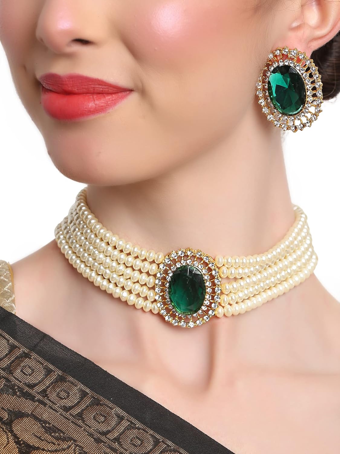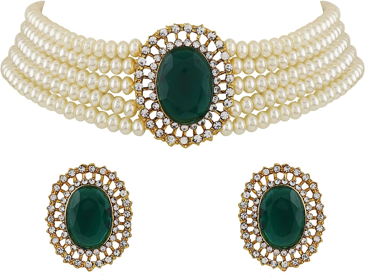 Shining Diva Fashion 18k Gold Plated Latest Stylish Fancy Choker Traditional Pearl Necklace Jewellery Set for Women
