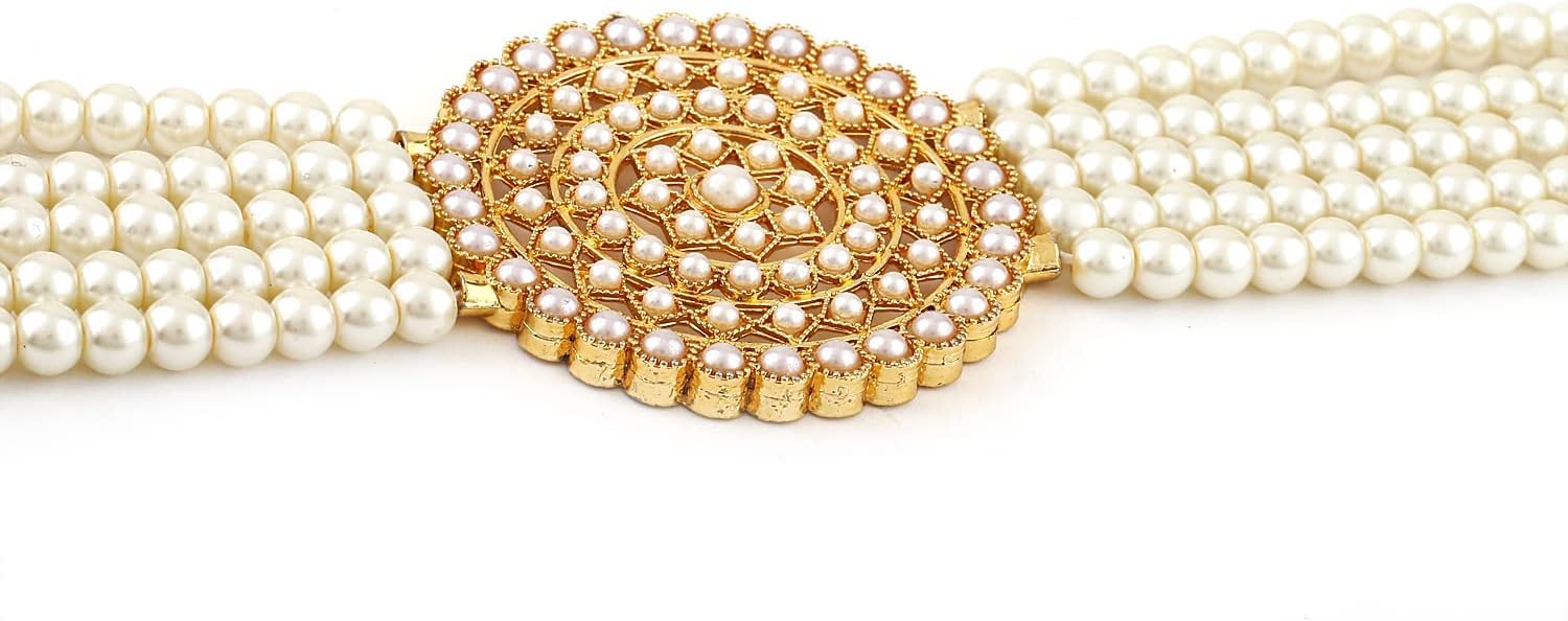 Shining Diva Fashion 18k Gold Plated Latest Stylish Fancy Long Traditional Pearl Necklace Jewellery Set for Women, One, Metal, No Gemstone