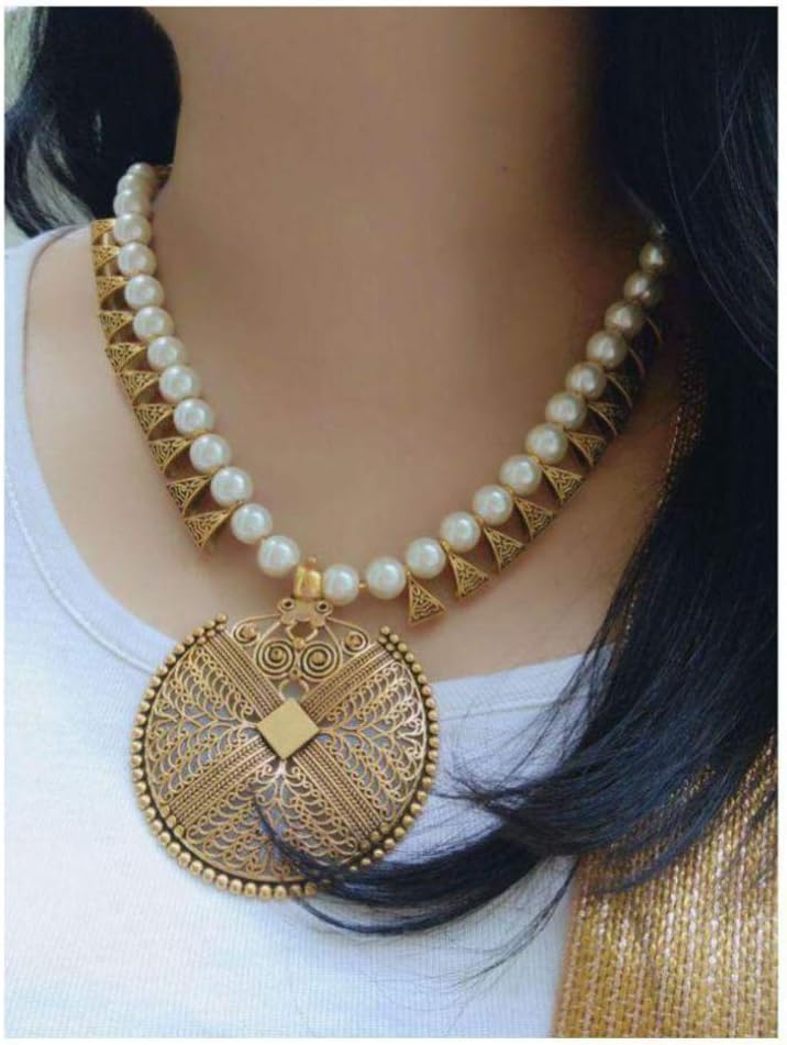 Shining Diva Fashion Latest Antique Design Stylish Necklace Set For Women Wedding Traditional Jewellery Set for Women (White) (10470s)