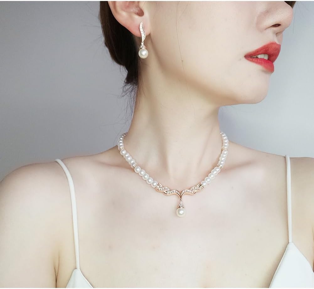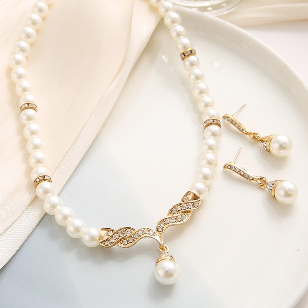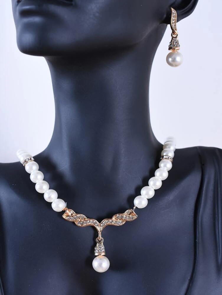 Shining Diva Fashion Latest Stylish Design Fancy Pearl Necklace Jewellery Set for Women (15454s)
