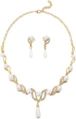 Shining Diva Fashion Latest Stylish Design Gold Plated Pearl Necklace Jewellery Set for Women (15121s)