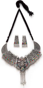 Shining Diva Fashion Latest Stylish Traditional Oxidised Silver Necklace Jewellery Set for Women (13116s)