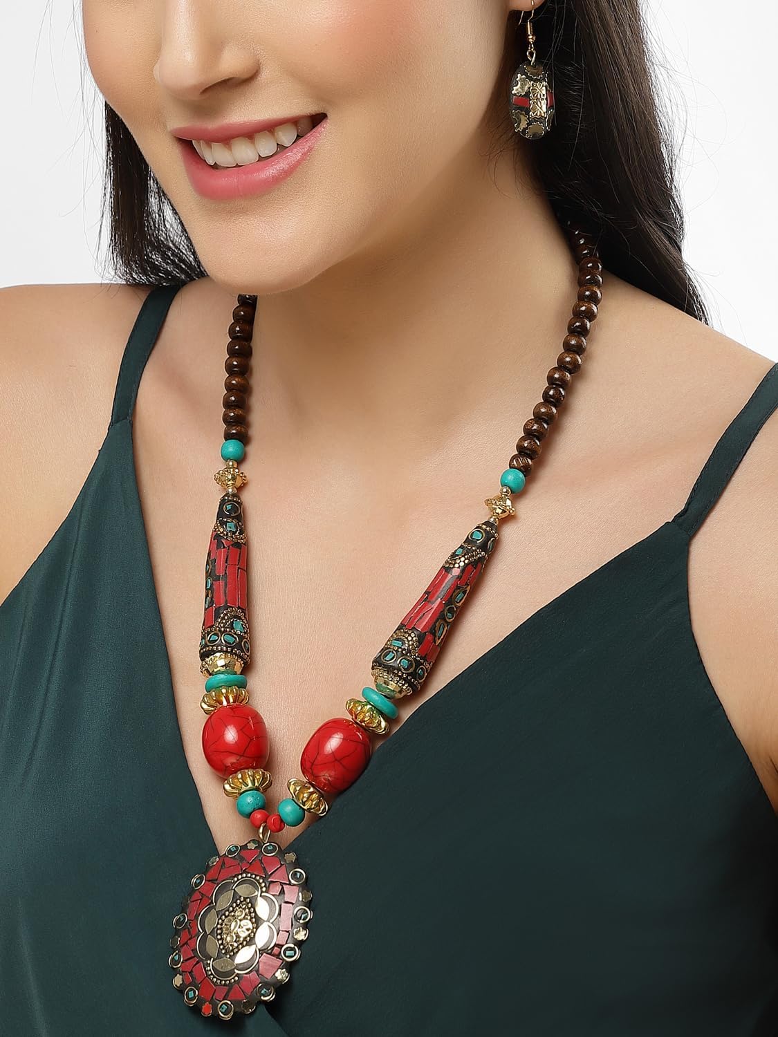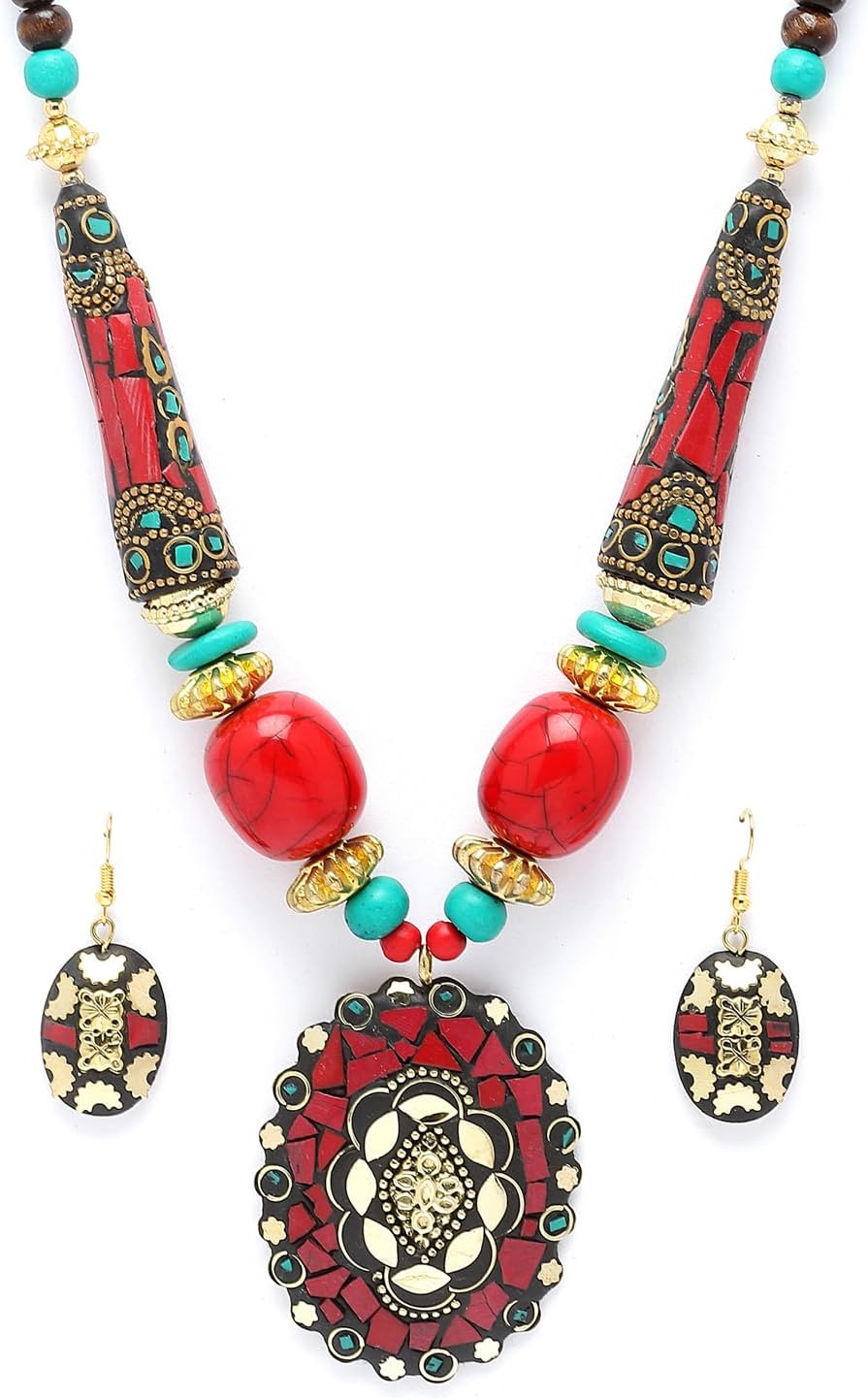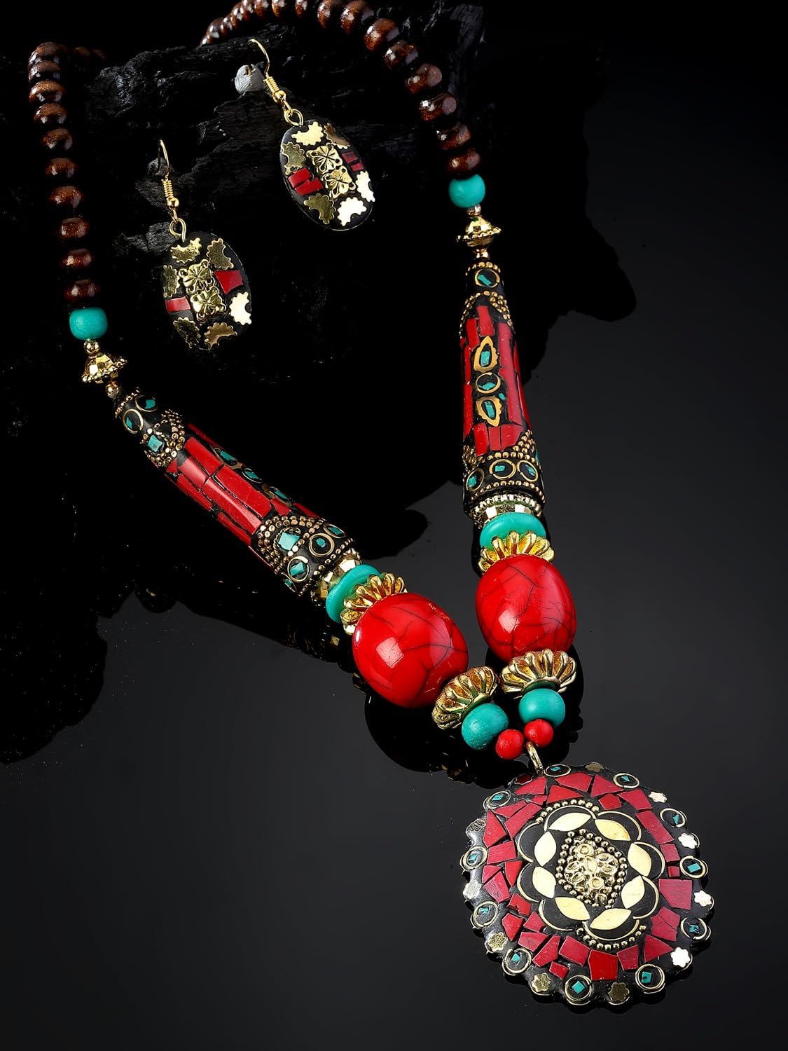Shining Diva Fashion Latest Stylish Traditional Tibetan Pendant Necklace Jewellery Set for Women