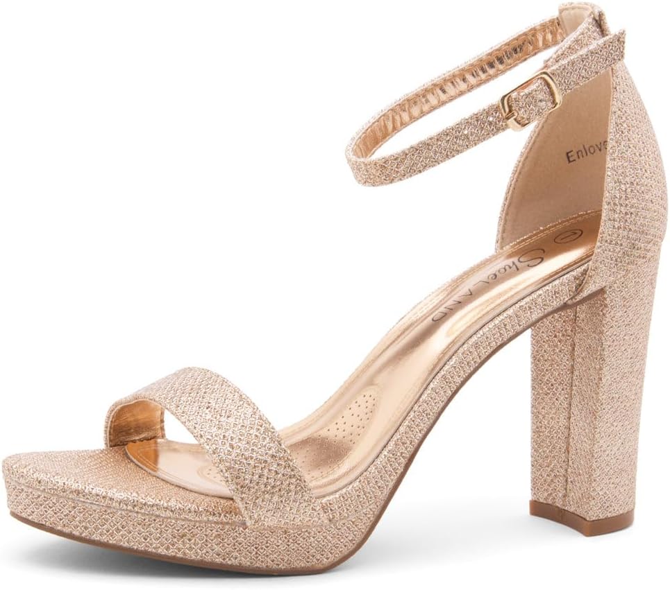 Shoe Land ENLOVE Women’s Open Toe Ankle Strap Chunky Block High Heel Sandals Dress Evening Party Platform Pump Shoes