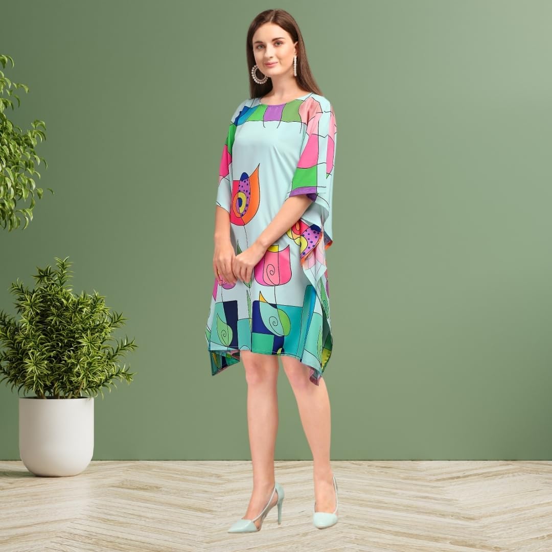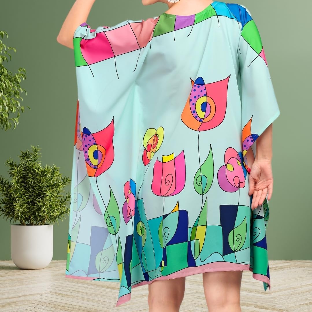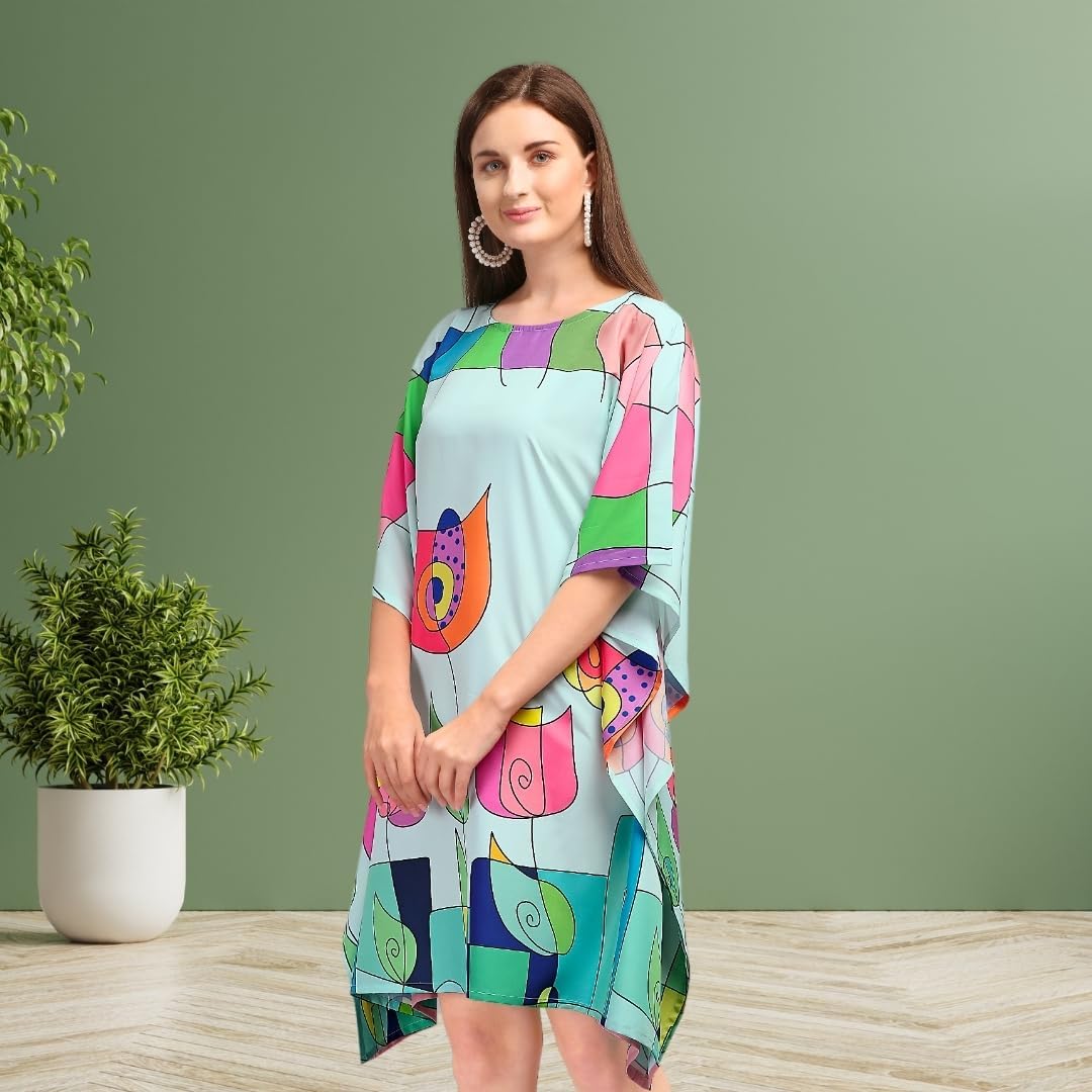 Upgrade your style with this stunning Poly Crepe Short Kaftan featuring a vibrant digital print that exudes elegance and charm. Designed to be versatile and comfortable, this free-size kaftan is suitable for all body types, thanks to the hidden adjustable belt that allows you to tailor the fit effortlessly. The knee-length cut makes it perfect for casual events, beach outings, or relaxed evenings at home. Crafted from premium poly crepe fabric, this kaftan is lightweight, soft, and breathable, ensuring you stay comfortable throughout the day. Its easy-care nature makes it a practical addition to your wardrobe, offering style and convenience in one. Whether you’re looking for a unique gift or a stylish outfit for yourself, this kaftan is a perfect choice!