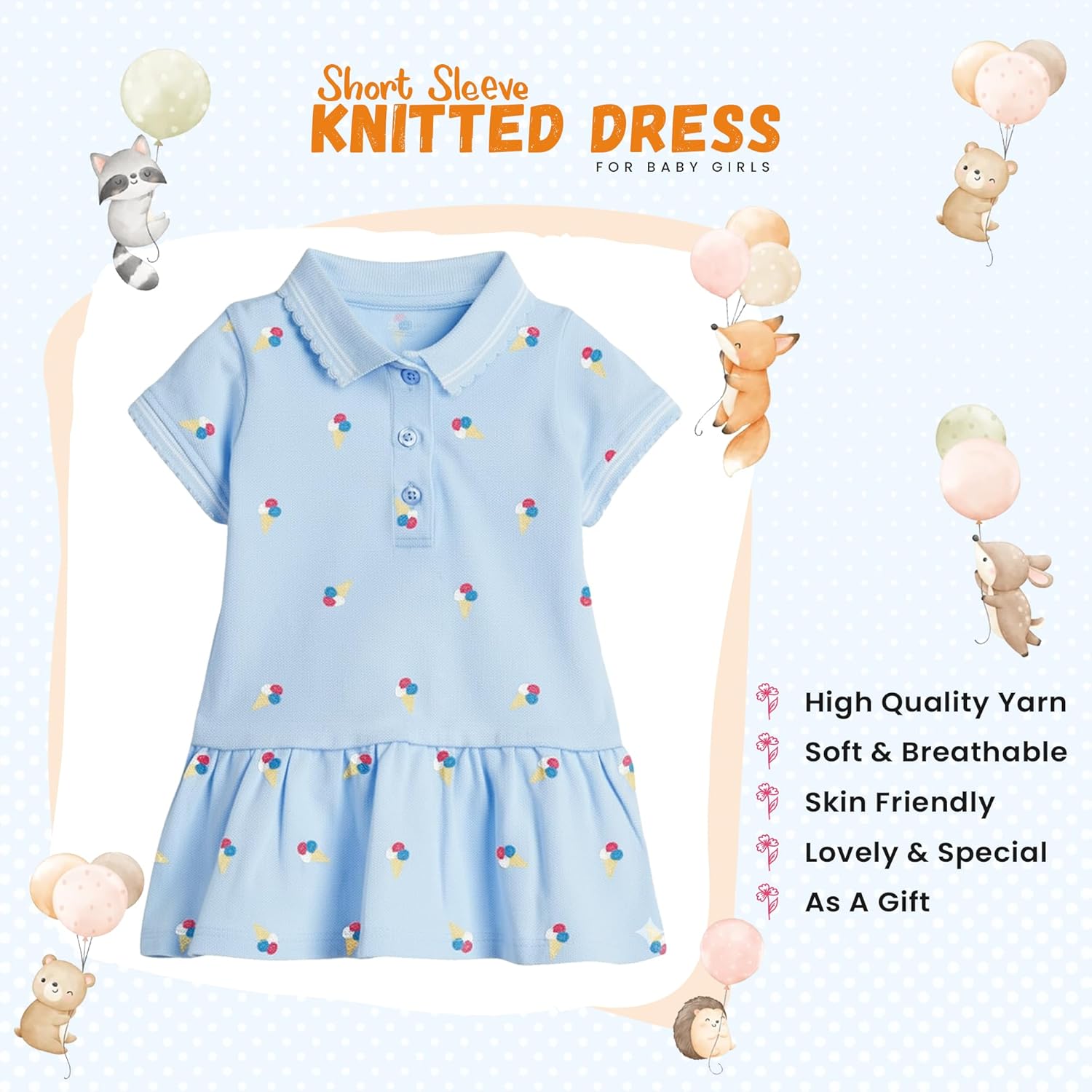 Short Sleeve Knitted Dress for Baby Girls : Soft Cotton, Cute Design, Summer Wear, Sweet Colors, Durable Baby Girl Dress