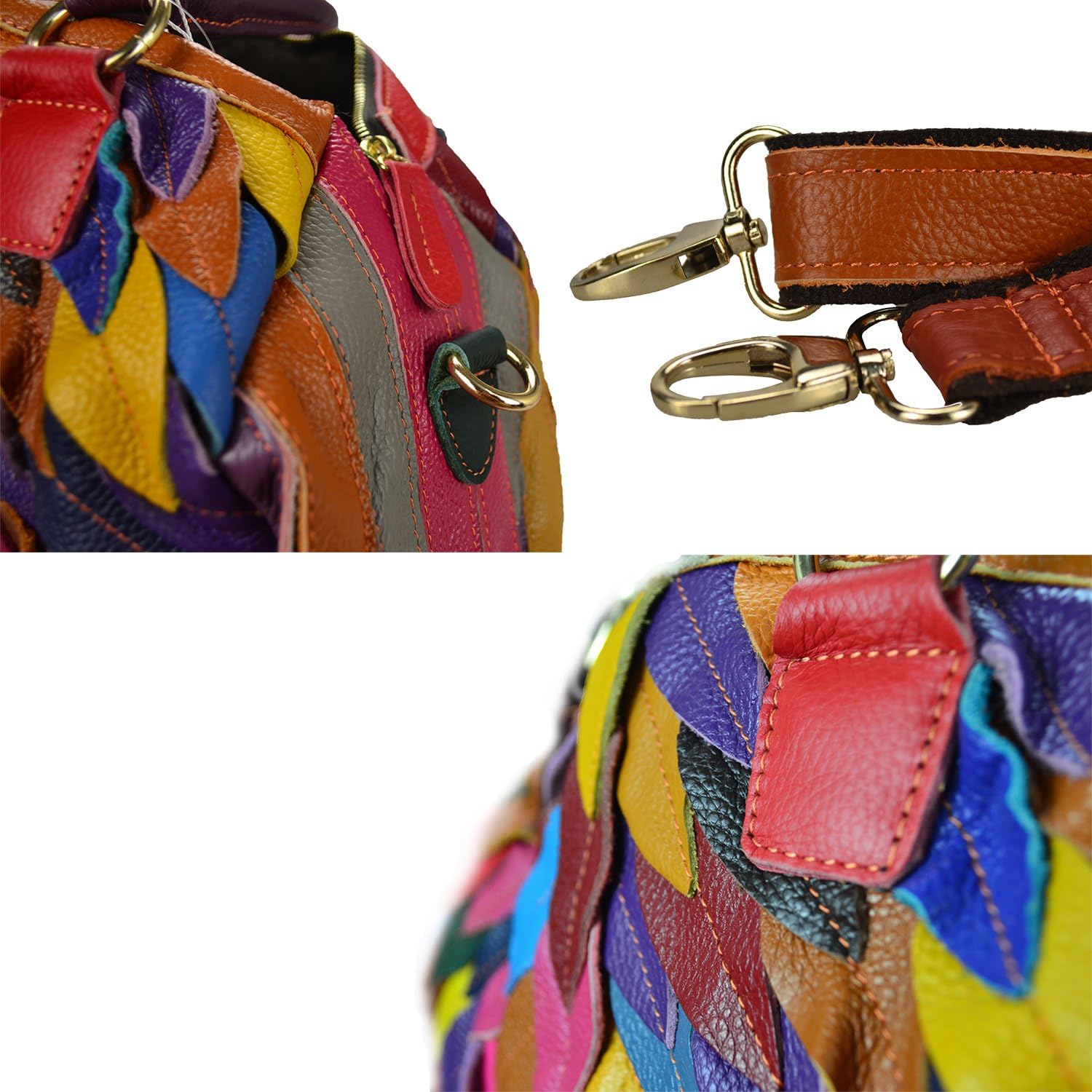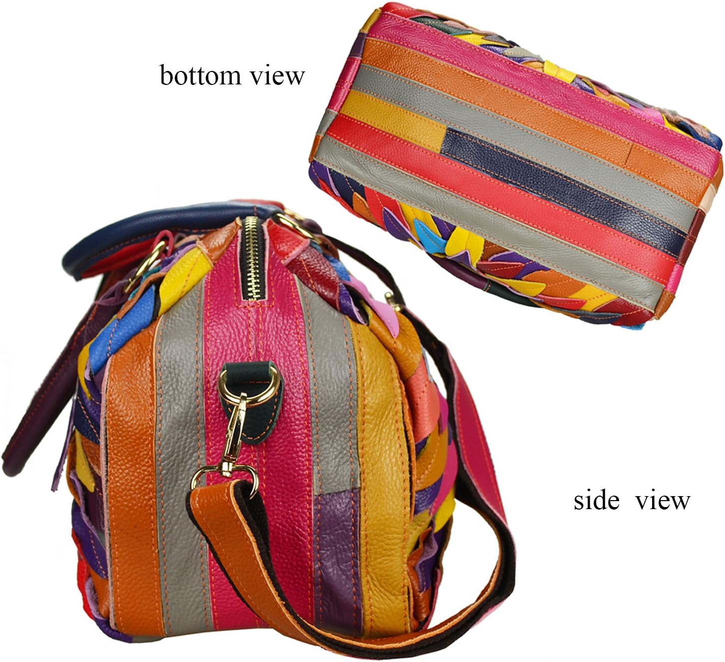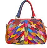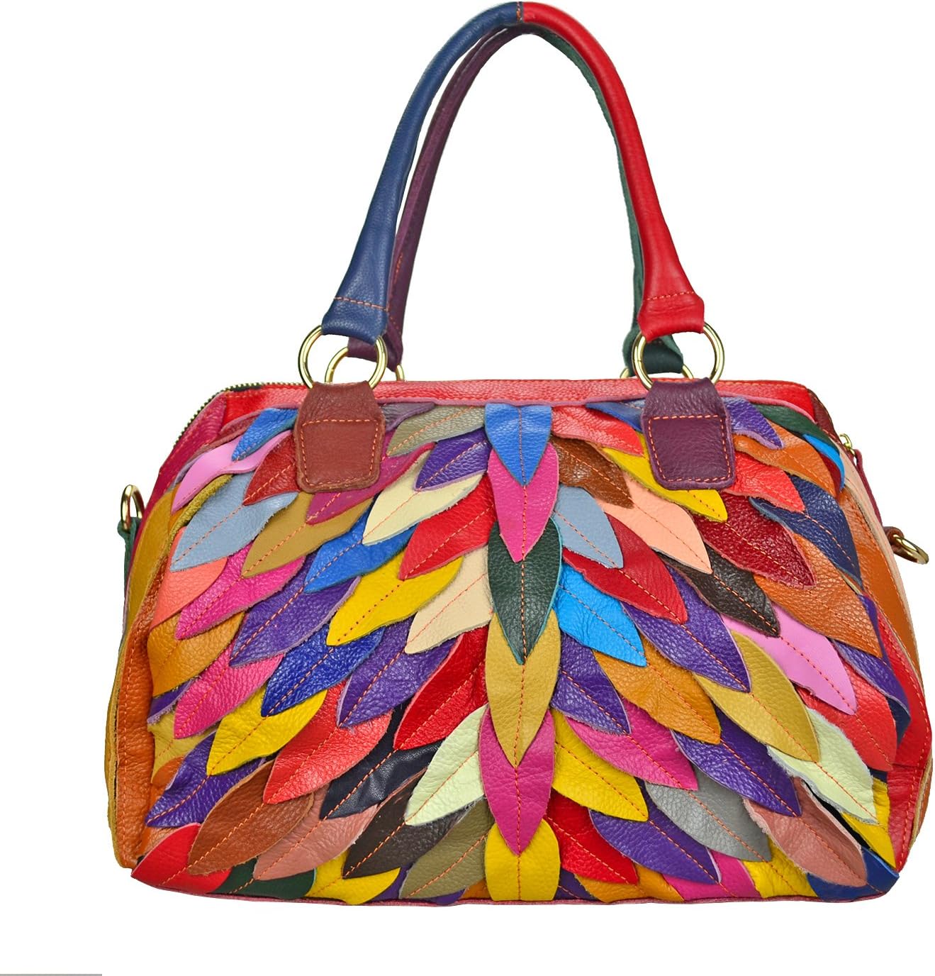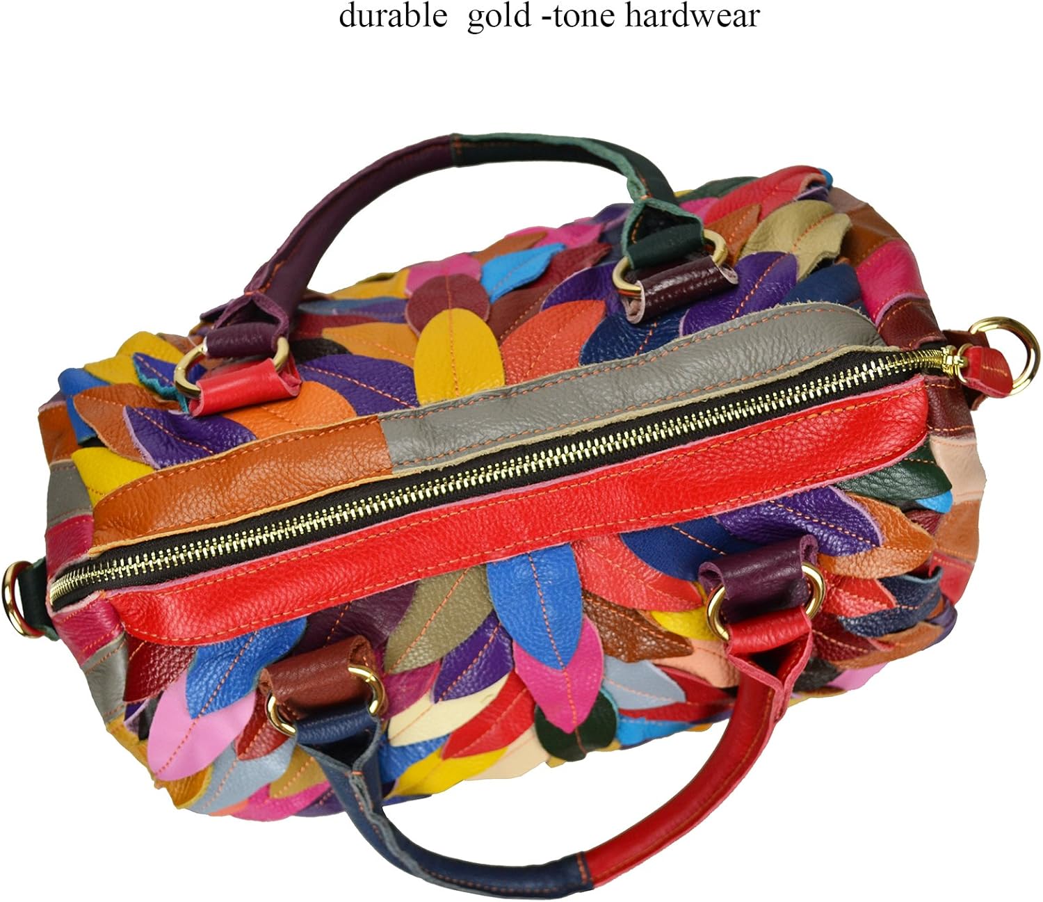 Sibalasi Women’s Multicolor Boston Bag Designer Purse Unique Genuine Leather Handbag Colorful Tote -, Leaves, Medium