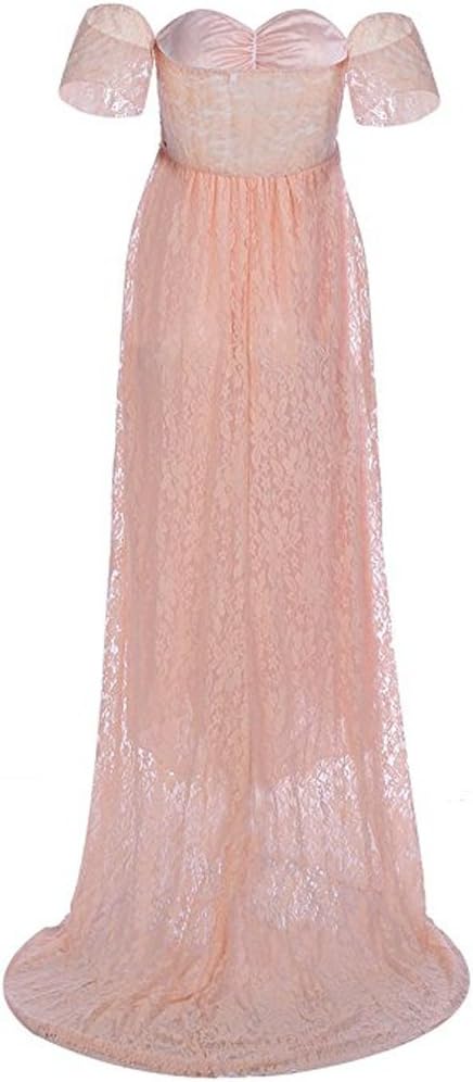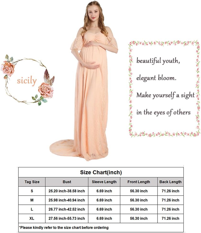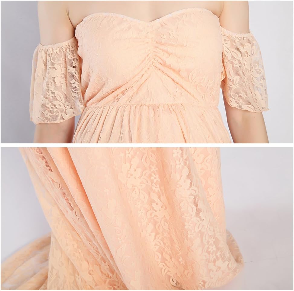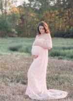 A lace off shoulder cut top with a long trailing bottom for an elegant piece you can wear for a maternity photoshoot. The soft and flowy style of this dress will give you a feminine and romantic look.