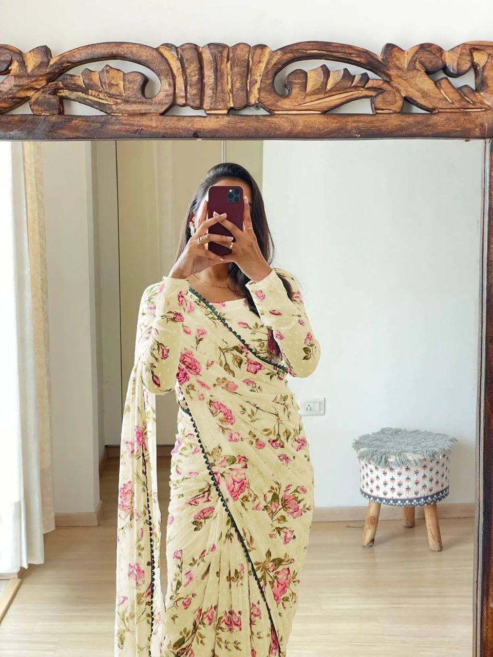 Explore the collection of beautifully designed Saree from Sidhidata on Amazon. Each piece is elegantly crafted and will surely add to your wardrobe. Pair this piece with heels or flats for a graceful look.